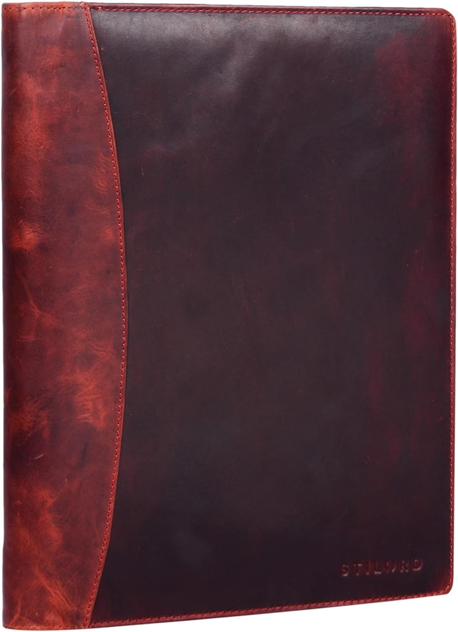 - Robuste Ringordnermechanik für A4-Blöcke und mit Klettverschluss gesichertem Fach | Bestens vorbereitet in jedes Meeting - hochwertige Aktenmappe aus echtem Leder von STILORD |