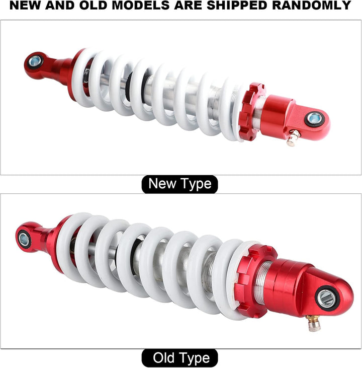 - Merkmal: Diese hintere o?d?mpferfederung bietet ein ruhigeres Fahrverhalten und ein besseres Gesamtd?mpfunmanagement. 330-mm-o?d?mpfer mit Federverellung, geeignet für Quads, einige Pitbikes, Bugg usw.