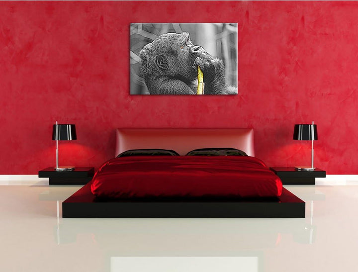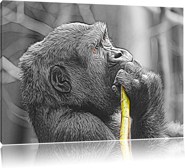 stolzer Gorilla isst schwarz/weiss Deluxe Format: 100x70 cm auf Leinwand, XXL riesige Bilder fertig