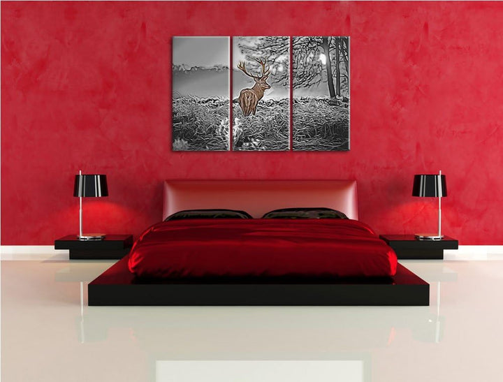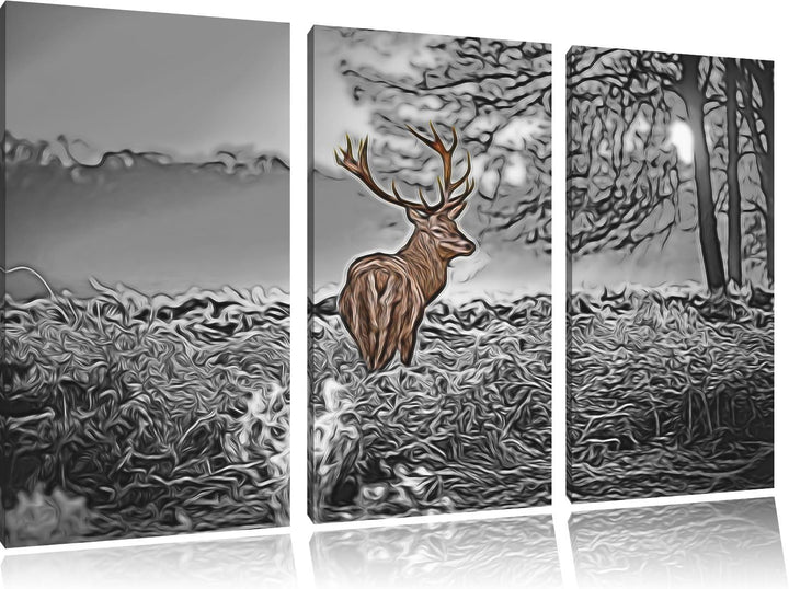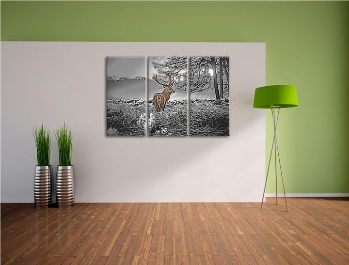 stolzer Hirsch im Wald3-Teiler Leinwandbild 120x80 Bild auf Leinwand, XXL riesige Bilder fertig gera