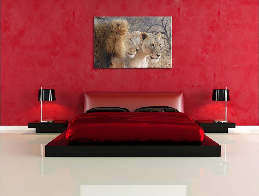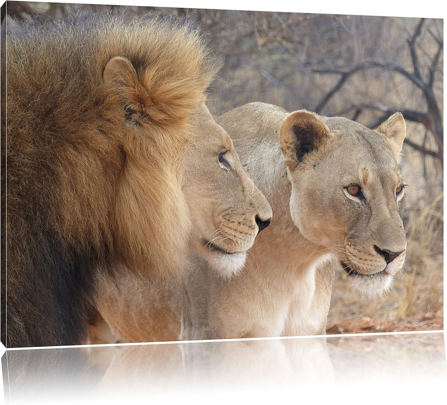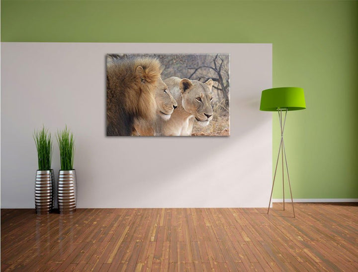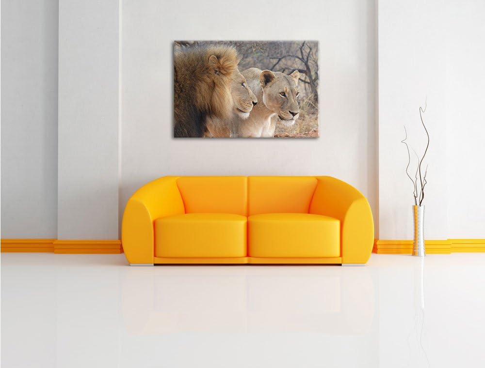 stolzes Löwenpaar, Format: 100x70 auf Leinwand, XXL riesige Bilder fertig gerahmt mit Keilrahmen, Ku