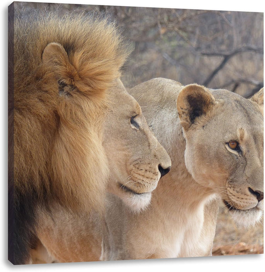 stolzes Löwenpaar, Format: 70x70 auf Leinwand, XXL riesige Bilder fertig gerahmt mit Keilrahmen, Kun