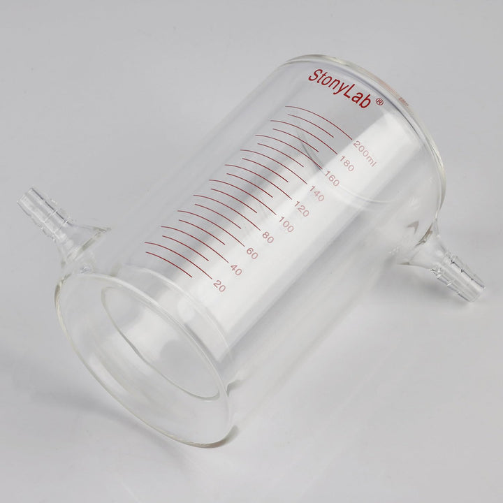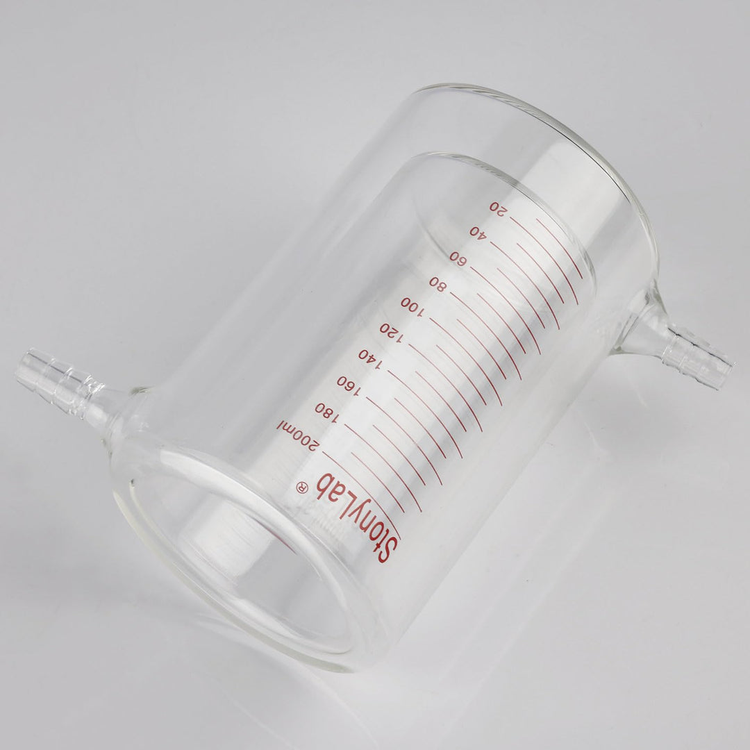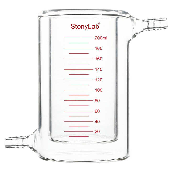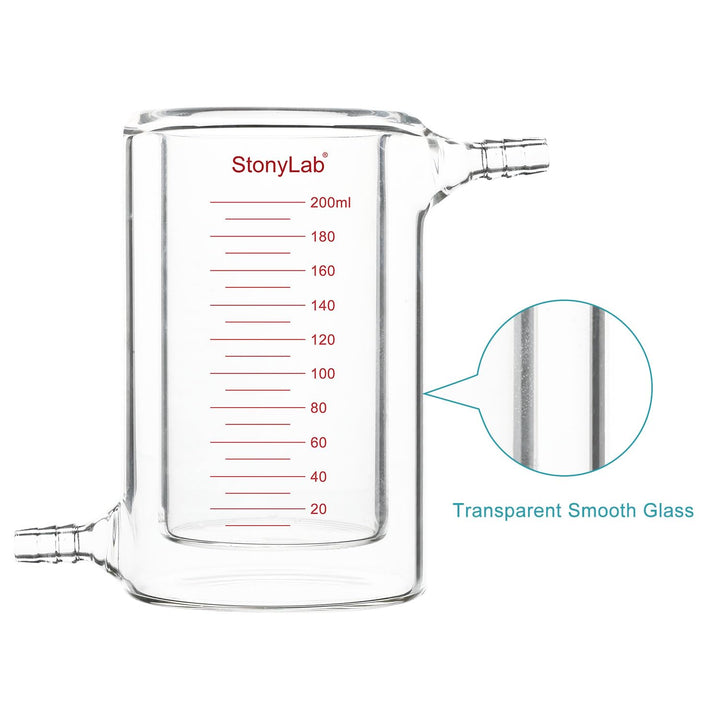 • Die dickwandige, doppelschichtige Konstruktion verhindert, dass Wärme aus dem Becherglas entweicht oder in die Lösung eindringt, und ist daher ideal für Experimente, die eine präzise Temperaturkontrolle erfordern; mit einem Einlass und einem Auslass