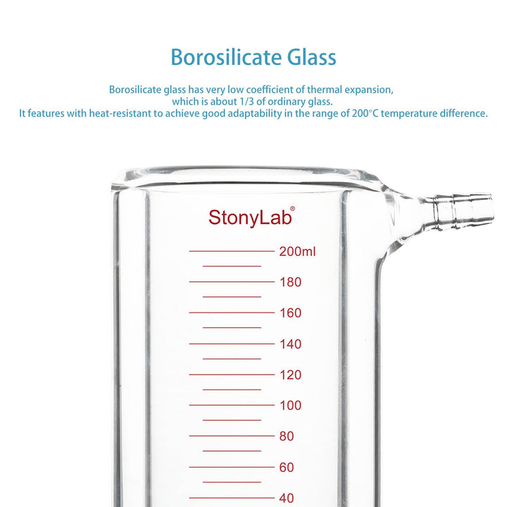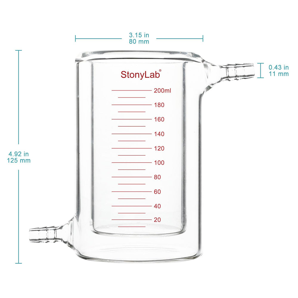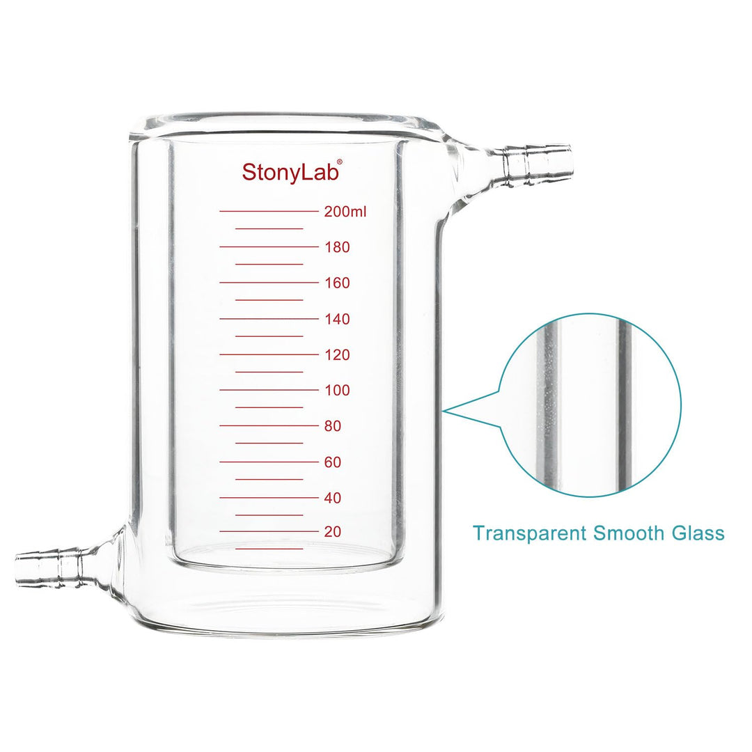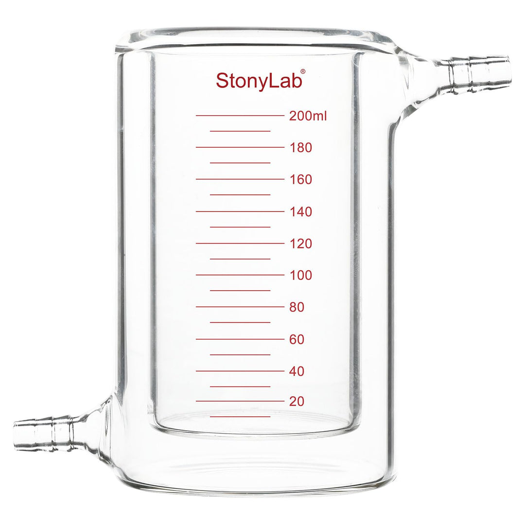stonylab Glas Ummantelt Becher, 1 Packung Messbecher aus Borosilikatglas mit Flachem Boden und Doppe