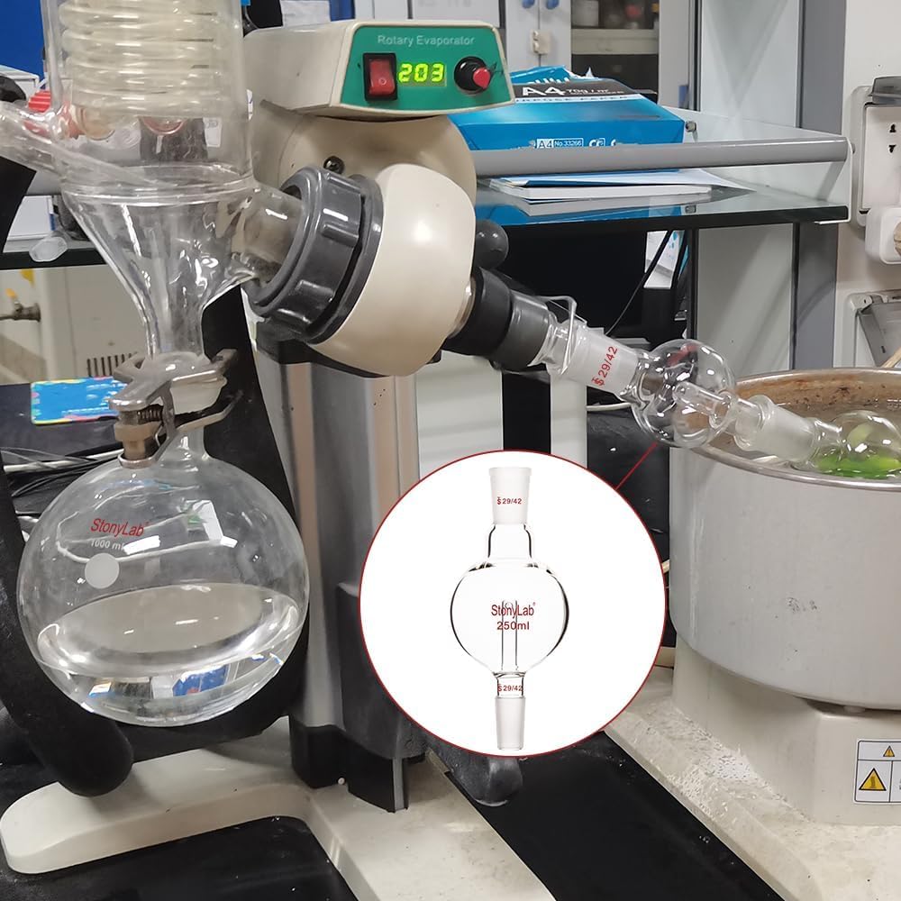 - Wird am Rotationsverdampfer zwischen Dampfrohr und Verdampferkolben eingesetzt, um zu verhindern, dass beim Rotationsverdampfen von Lösungsmitteln Materialspritzer und Verunreinigungen in den Verdampferkolben gelangen
