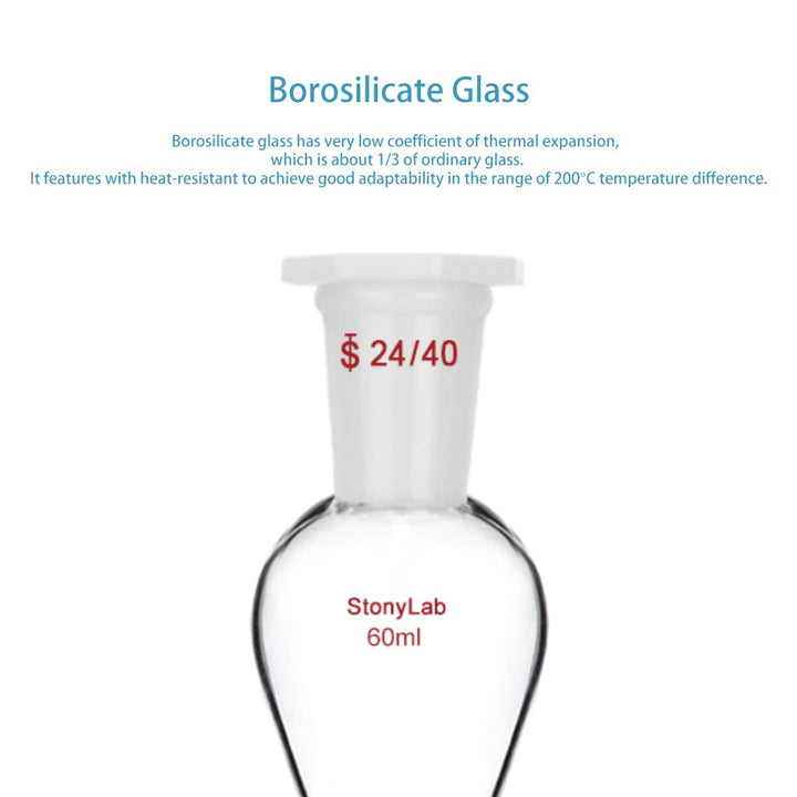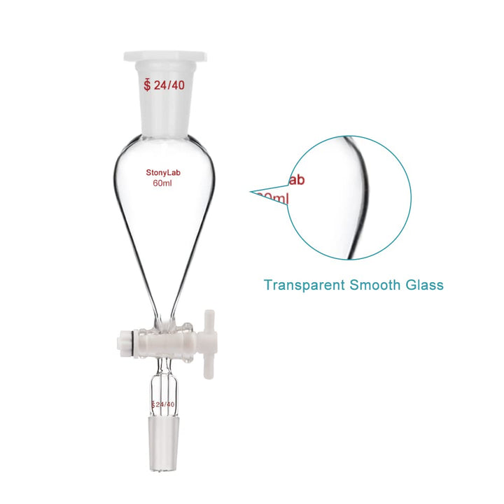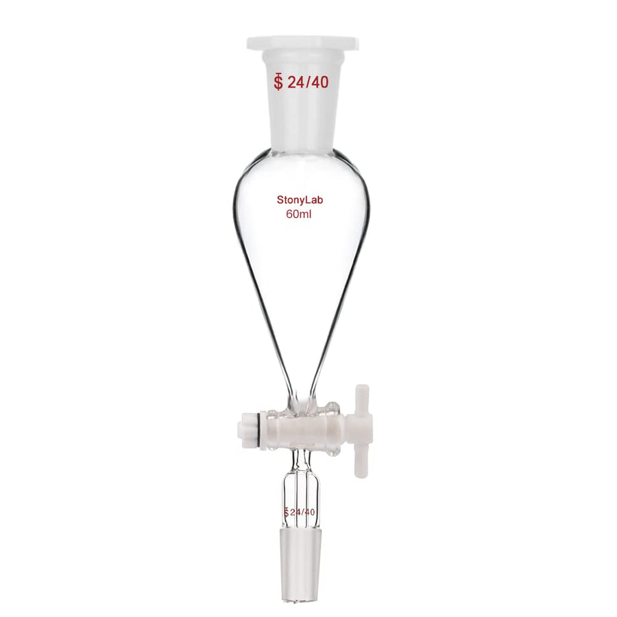 stonylab Scheidetrichter Glas, 60 ml Separatorentrichter mit PTFE-Absperrhahn Konischer Birnenförmig