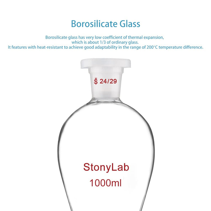 - 1000 ml Glastrenntrichter zum Trennen von Flüssigkeiten unterschiedlicher Dichte