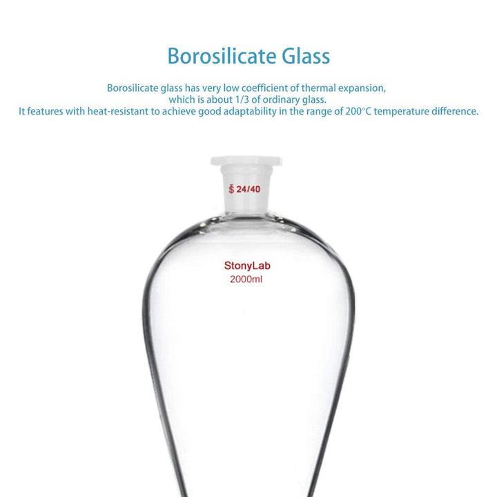 - 2000 ml Glastrenntrichter zum Trennen von Flüssigkeiten mit unterschiedlichen Dichten