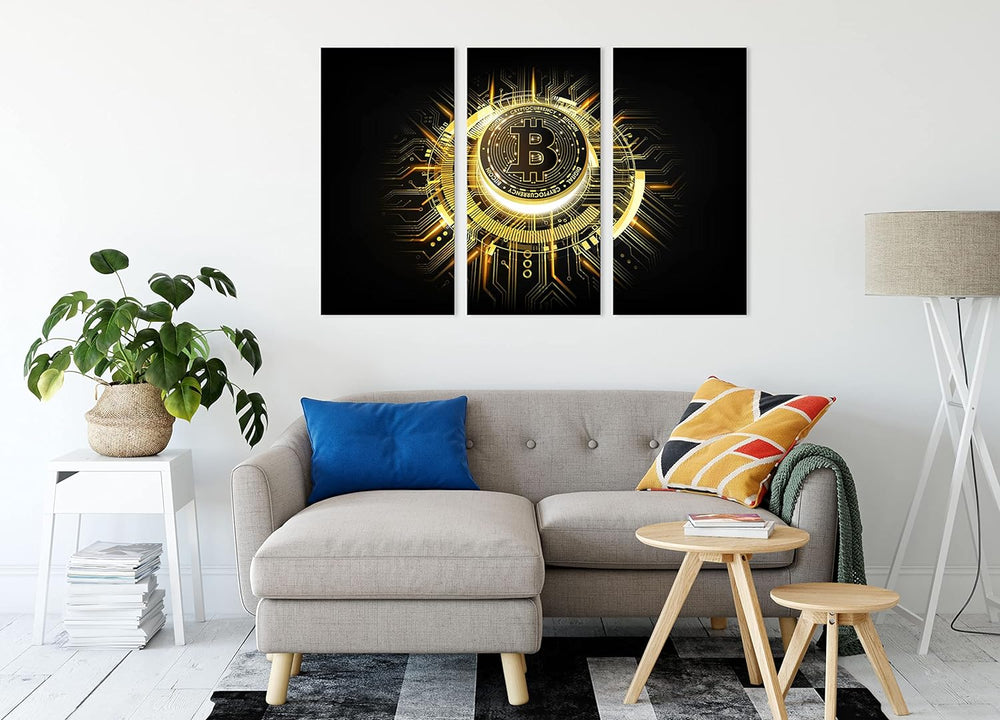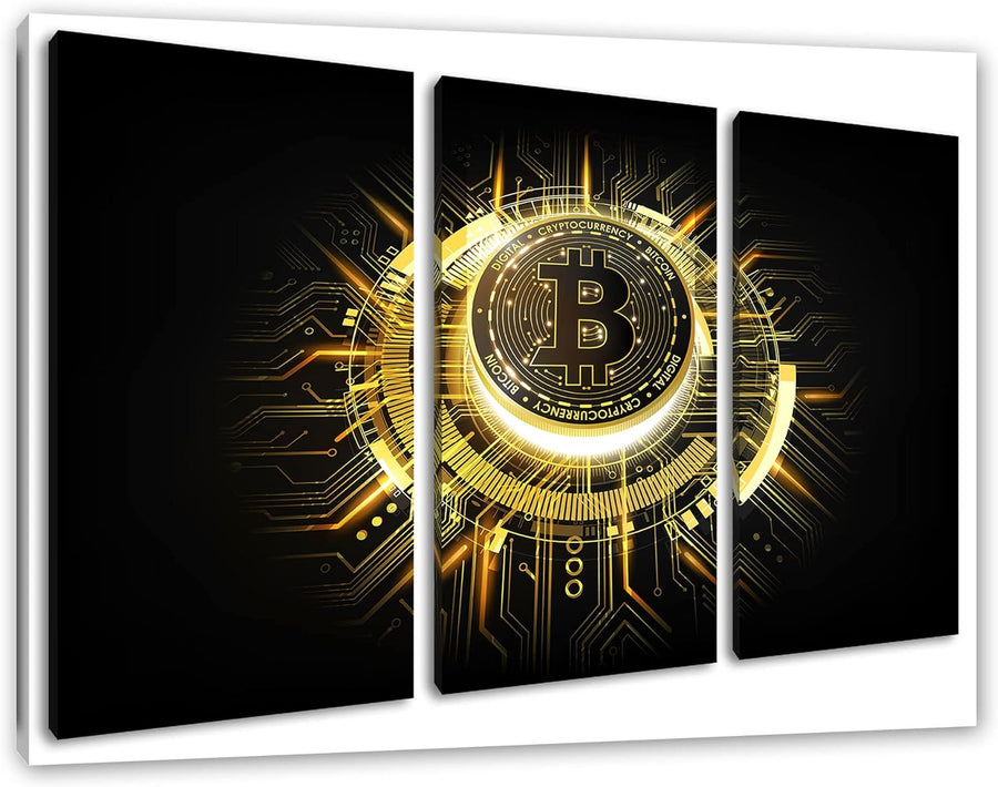 strahlender Bitcoin BTCals Leinwandbild 3 teilig | Grösse: 120x80 cm | Wandbild | Kunstdruck | ferti