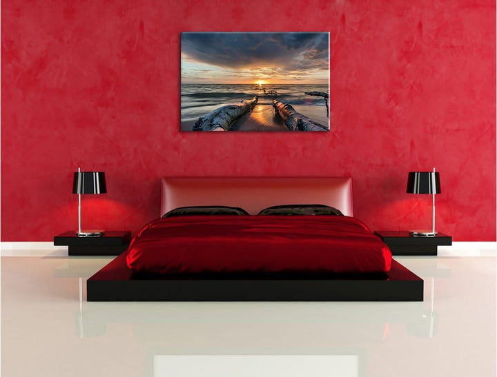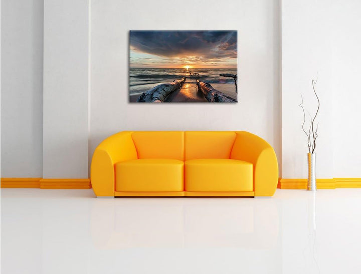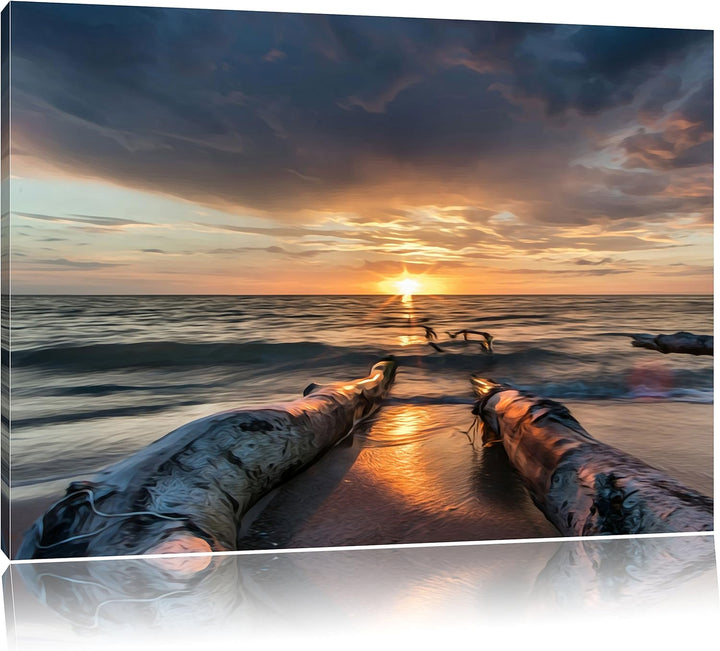Strand Öl Effekt, Format: 100x70 auf Leinwand, XXL riesige Bilder fertig gerahmt mit Keilrahmen, Kun