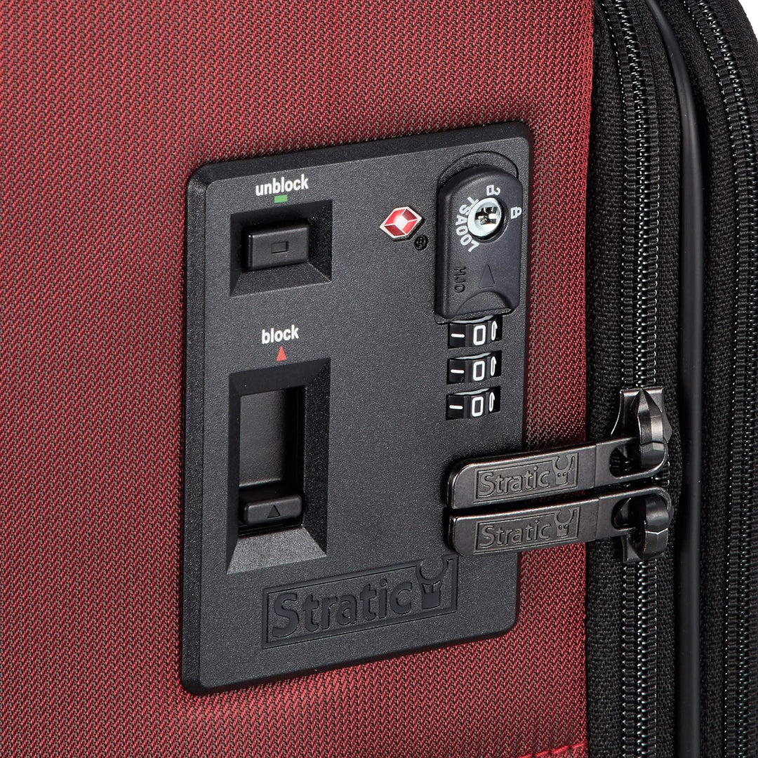 - ROLLENBREMSE - Die integrierte und zum Patent angemeldete Feststellbremsensteuerung am Reisekoffer verhindert ungewolltes Wegrollen.