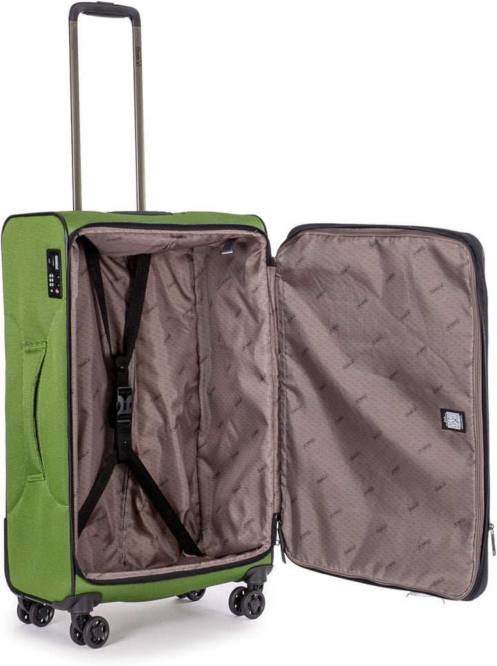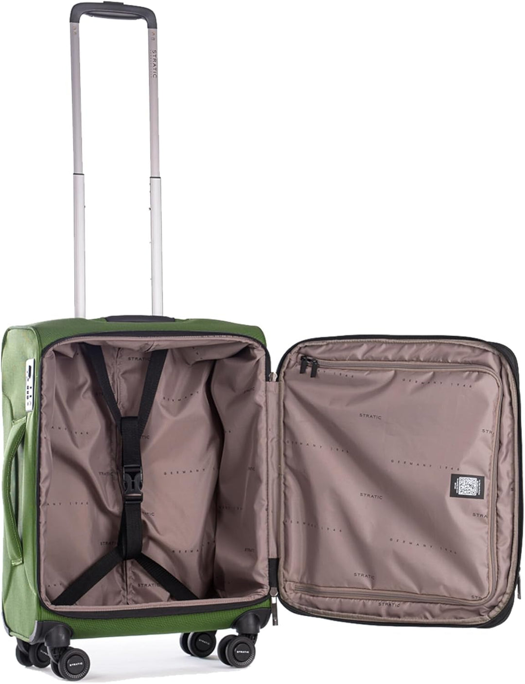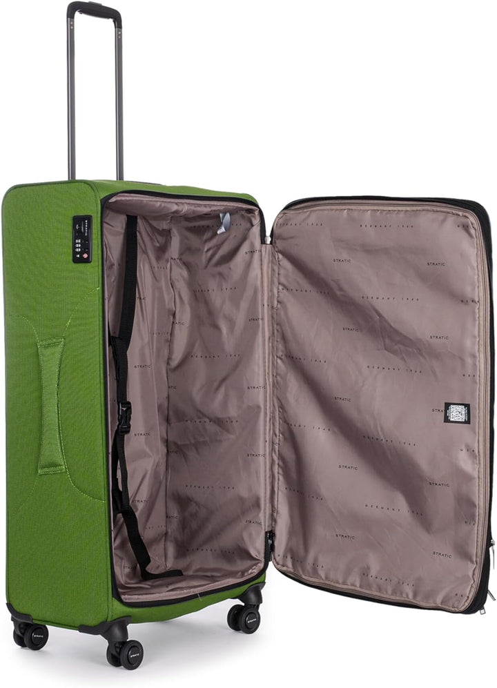 PRODUKTBESCHREIBUNGEN Der neue Bendigo Light + ist das vielseitige Leichtgewicht der Bendigo Serie. Dank eines Reissverschlusses können die Koffer einfach im Fassungsvermögen erweitert werden und ermöglichen somit maximales Packvolumen für alle Reisen. Das aufgesetzte Frontfach ist mit 1-Wege- Sicherheitsreissverschlüssen versehen. Das geräumige Hauptfach ist mit einem knitterfreien Satin Stoff ausgestattet und besitzt einen 2-Wege-Sicherheitsreissverschluss für komfortables Packen. Im Inneren befinden sich ein Reissverschluss-Hauptfach mit hoch belastbaren Kreuzspanngurten. Ein Kugelgelagertes Leichtlauf-Doppelrollensystem und ein ergonomisch geformter Griff an einem arretierbaren Teleskopgestänge lassen die Koffer der Bendigo Light + Serie extrem leicht fahren und bepackt wendig manövrieren. Die Ausstattung mit einem TSA Schloss für die Reisen in die USA ist selbstverständlich. Neu ist die Ausstattung mit dem STRATIC CONNECT NFC-Chip. Jeder Chip hat eine einzigartige und nicht fälschbare ID. So ist es möglich, die Koffer App-basiert zu steuern und alle nötigen Infos rund um sein Gepäck zu erhalten. In der verschlüsselten App erhalten Sie Produkt- und Firmeninformationen, es gibt einen Packberater, die Möglichkeit, Packlisten zu erstellen, Sie können für den „Lost and Found“ Check Ihre Kontaktdaten hinterlegen und – last but not least – wird Ihr Co2-Fussabdruck von STRATIC mit Climate Coins für nachhaltige Projekte kompensiert. Auch einzeln als Handgepäck-Trolley S, Trolley M oder Trolley L erhältlich. Serie: Bendigo Light + Typ: Kofferset Material: Polyester Hauptfach mit Spanngurten Reissverschlusstasche Fronttasche (bis zu 15“ Laptop + weitere Artikel) 4 Rollen TSA-zugelassenes Zahlenschloss Teleskopgriff STRATIC CONNECT NFC-Chip Masse Koffer L: 27 cm x 84 cm x 47 cm, 105 L (erweitert: 120 L), 3,3 kg Masse Koffer M: 25 cm x 72 cm x 42 cm, 78 L (erweitert: 88 L), 2,89 kg Masse Koffer S: 20 cm x 54 cm x 39 cm, 40 L (erweitert: 45 L), 2,15 kg