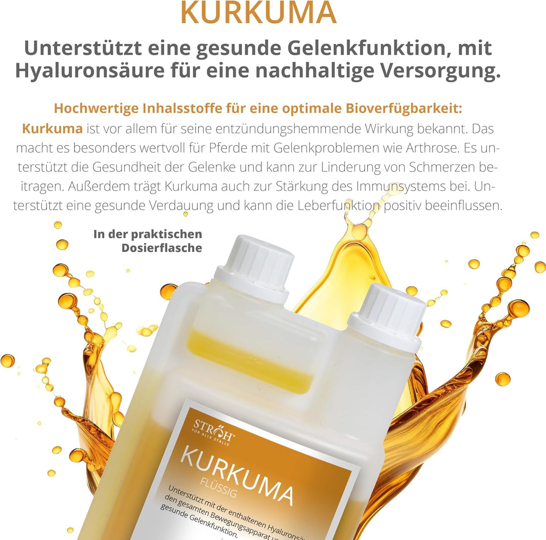 - DAS GOLDENE GELENKELIXIER – Unser STRÖH Küsten-Elixier Kurkuma unterstützt die Gelenkfunktion bei Pferden. Die enthaltene Hyaluronsäure hält die Gelenke geschmeidig, so dass dein Pferd agil über die Koppel galoppieren kann.