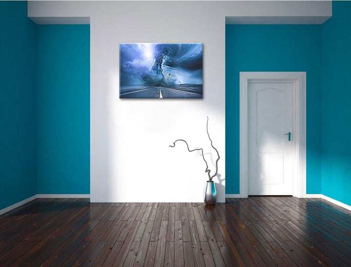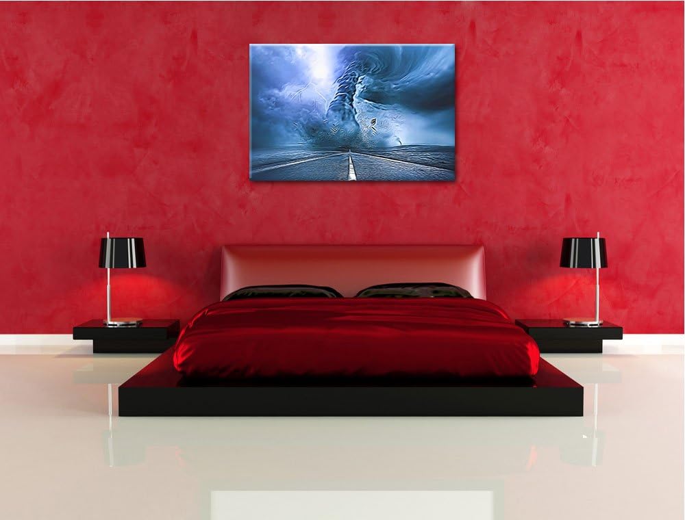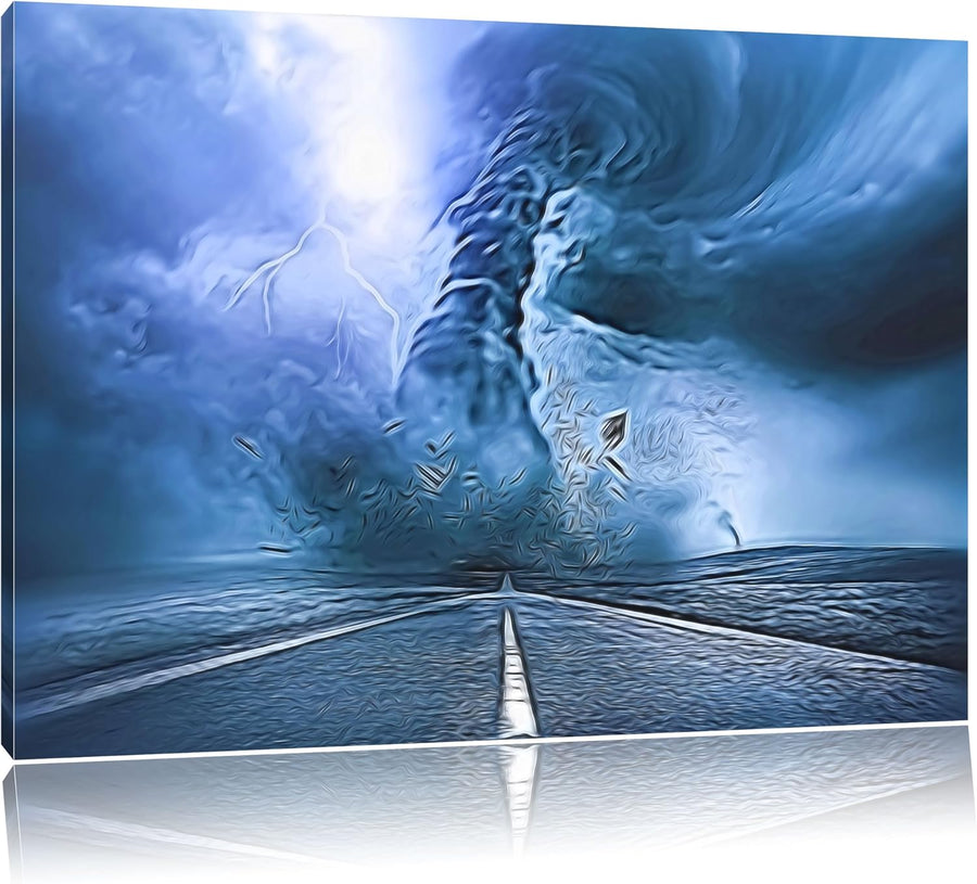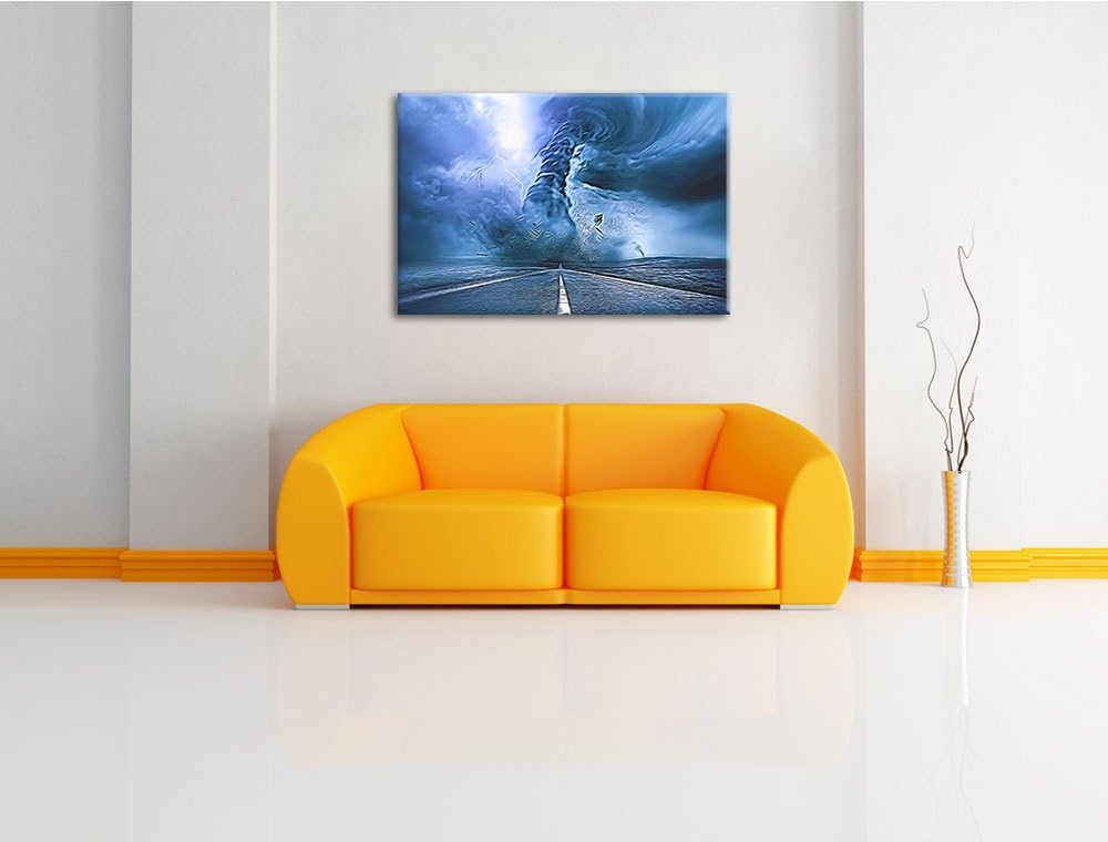 stürmender Tornado auf einer Landstrasse Format: 100x70 auf Leinwand, XXL riesige Bilder fertig gera