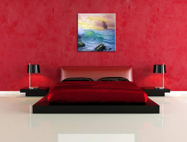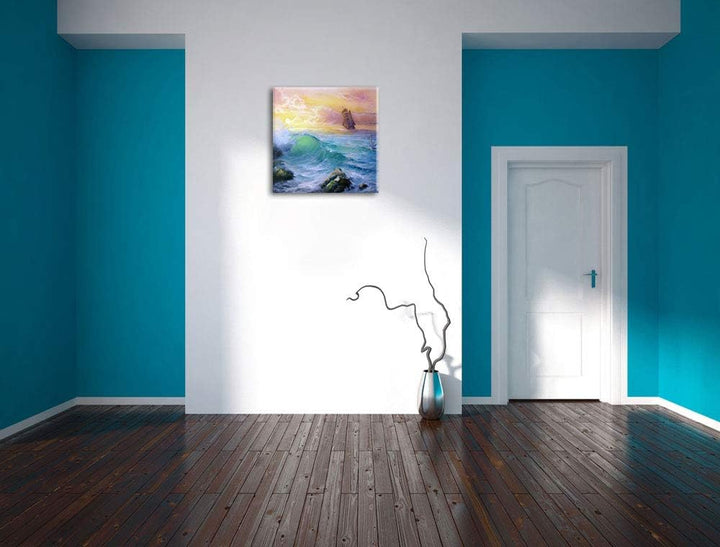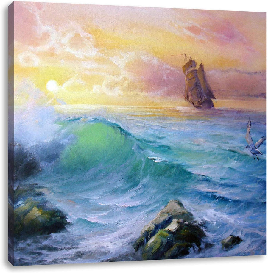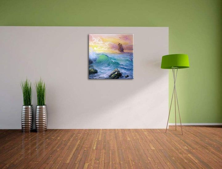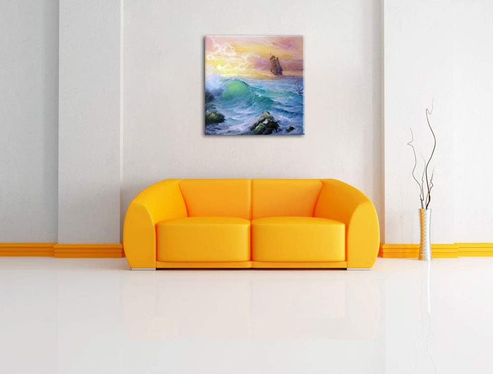 Sturm überm Meer Kunst, Format: 70x70 auf Leinwand, XXL riesige Bilder fertig gerahmt mit Keilrahmen