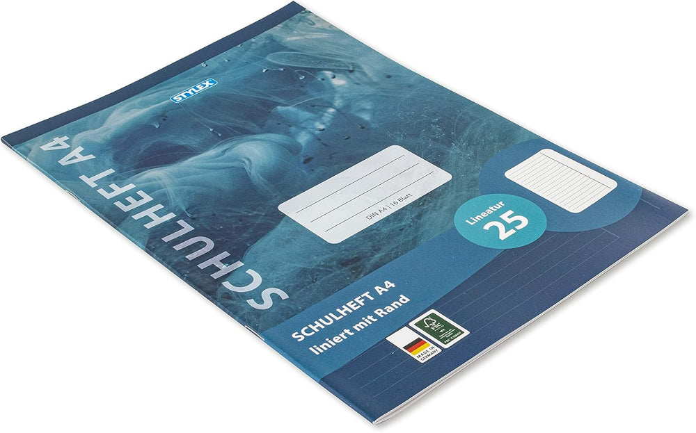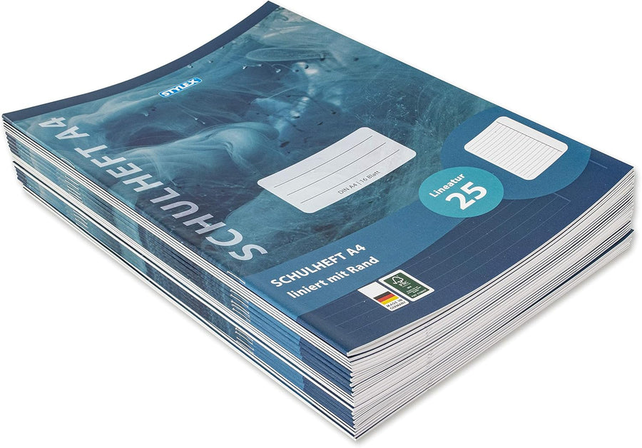 - 25 Schulhefte im Format DIN A4 mit je 16 Blatt