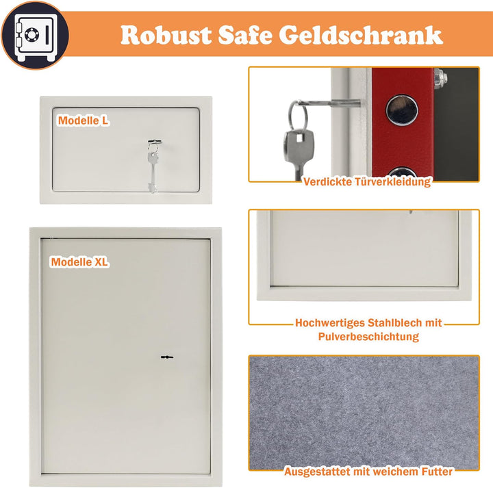 SUBTLETY 35x50x31cm Möbeltresor Abschliessbar Safe Tresor mit Doppelbartschloss und 2 Schlüssel Wand