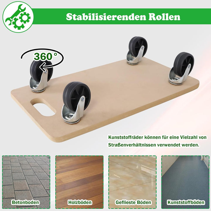 - 【Rollbretter Transport】Die 18mm starken MDF-Platten sind stabil und dick, biegefest und nicht leicht zu brechen. Ein einziges Rollbrett kann bis zu 200KG tragen.