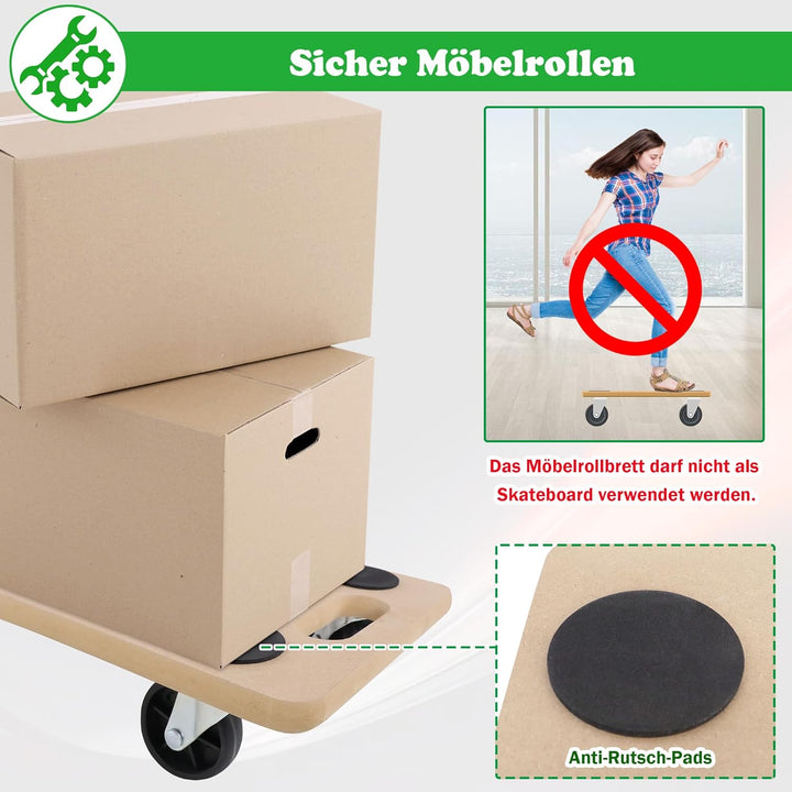 - 【Sicher in der Anwendung】Die Rollenplatte ist mit 4 Anti-Rutsch-Pads ausgestattet, die verhindern, dass die Möbel während der Bewegung verrutschen und versehentlich beschädigt werden, wodurch die Sicherheit des Benutzers gewährleistet wird.