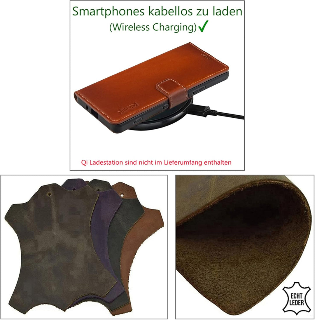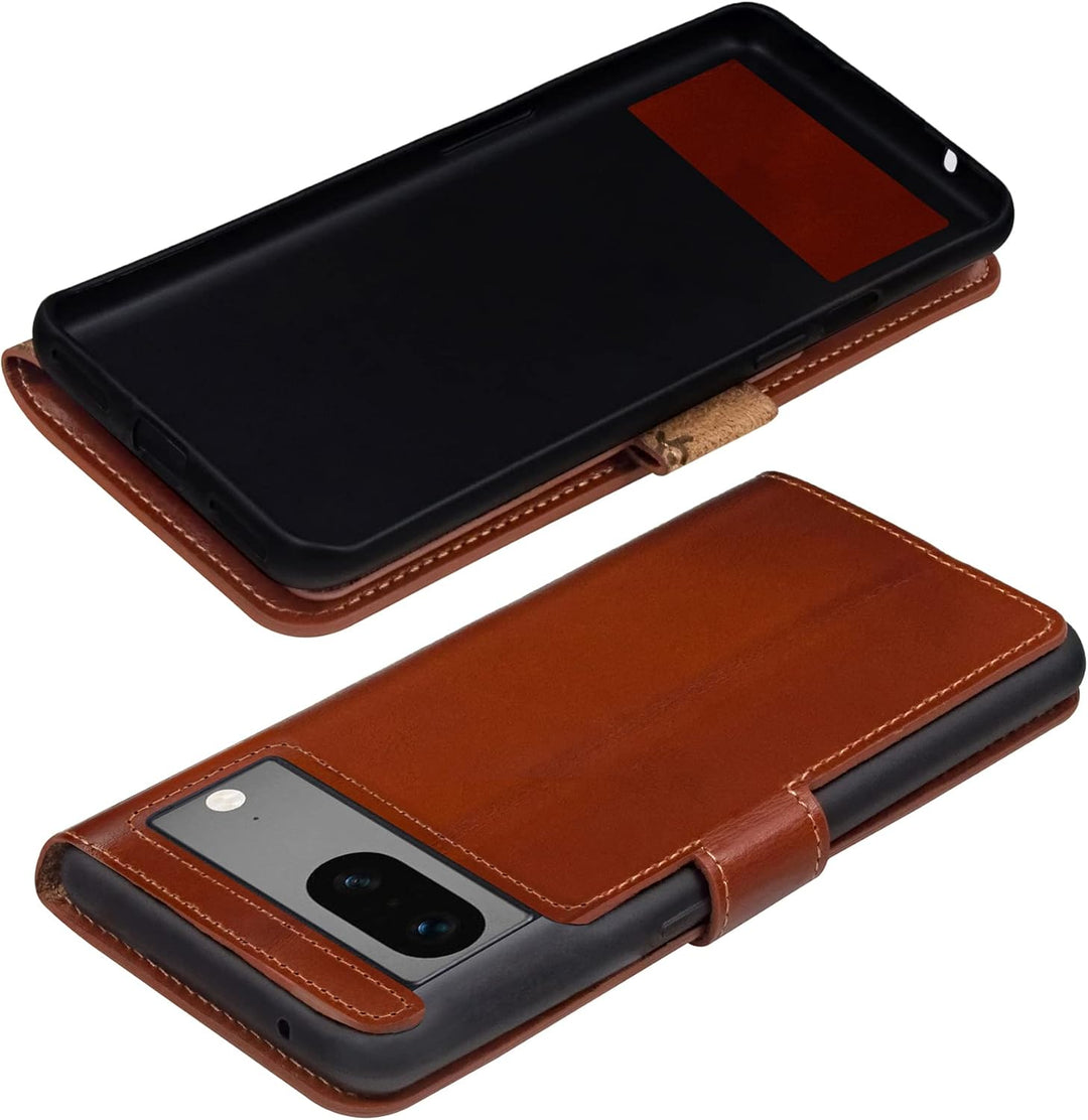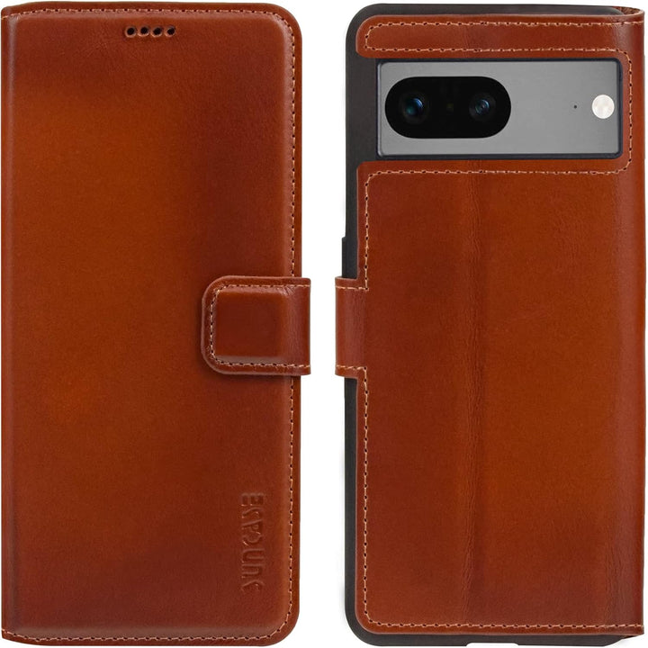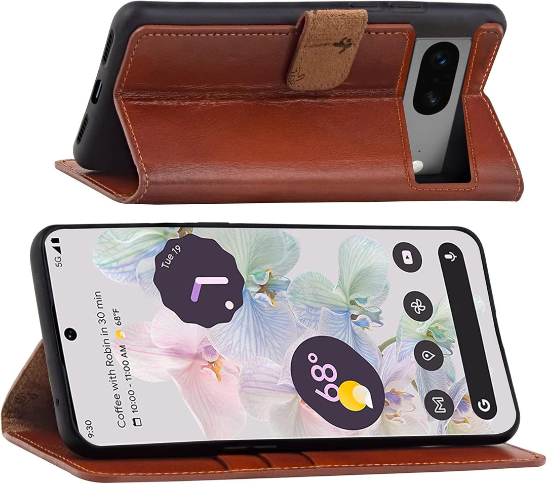 Suncase Book-Style Hülle kompatibel mit Google Pixel 7 5G Leder Tasche (Slim-Fit) Lederhülle Handyta