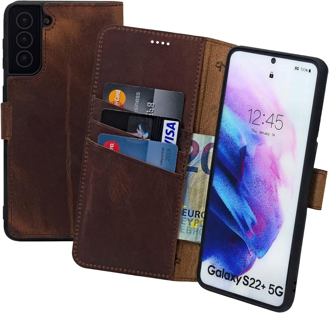 - Diese millimetergenaue, spezielle Ledertasche ist für das Samsung Galaxy S22+ Plus 5G aus langlebigen, robusten ECHTEM Leder angefertigt.