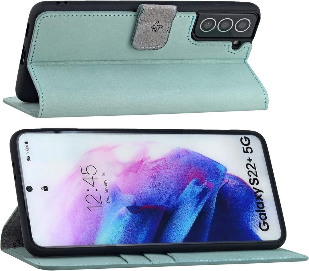 - Diese millimetergenaue, spezielle Ledertasche ist für das Samsung Galaxy S22+ Plus 5G aus langlebigen, robusten ECHTEM Leder angefertigt.