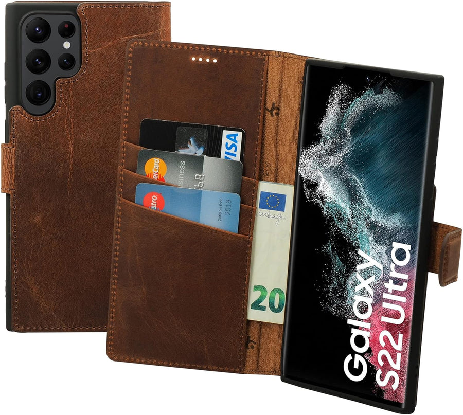 - Diese millimetergenaue, spezielle Ledertasche ist für das Samsung Galaxy S22 Ultra 5G aus langlebigen, robusten ECHTEM Leder angefertigt.
