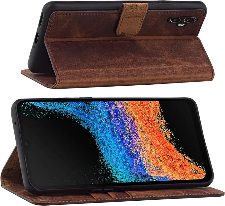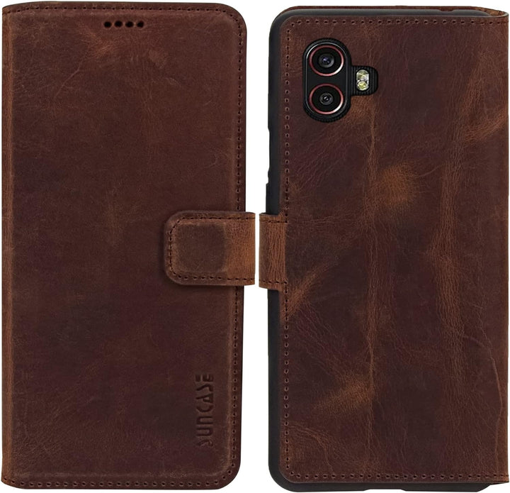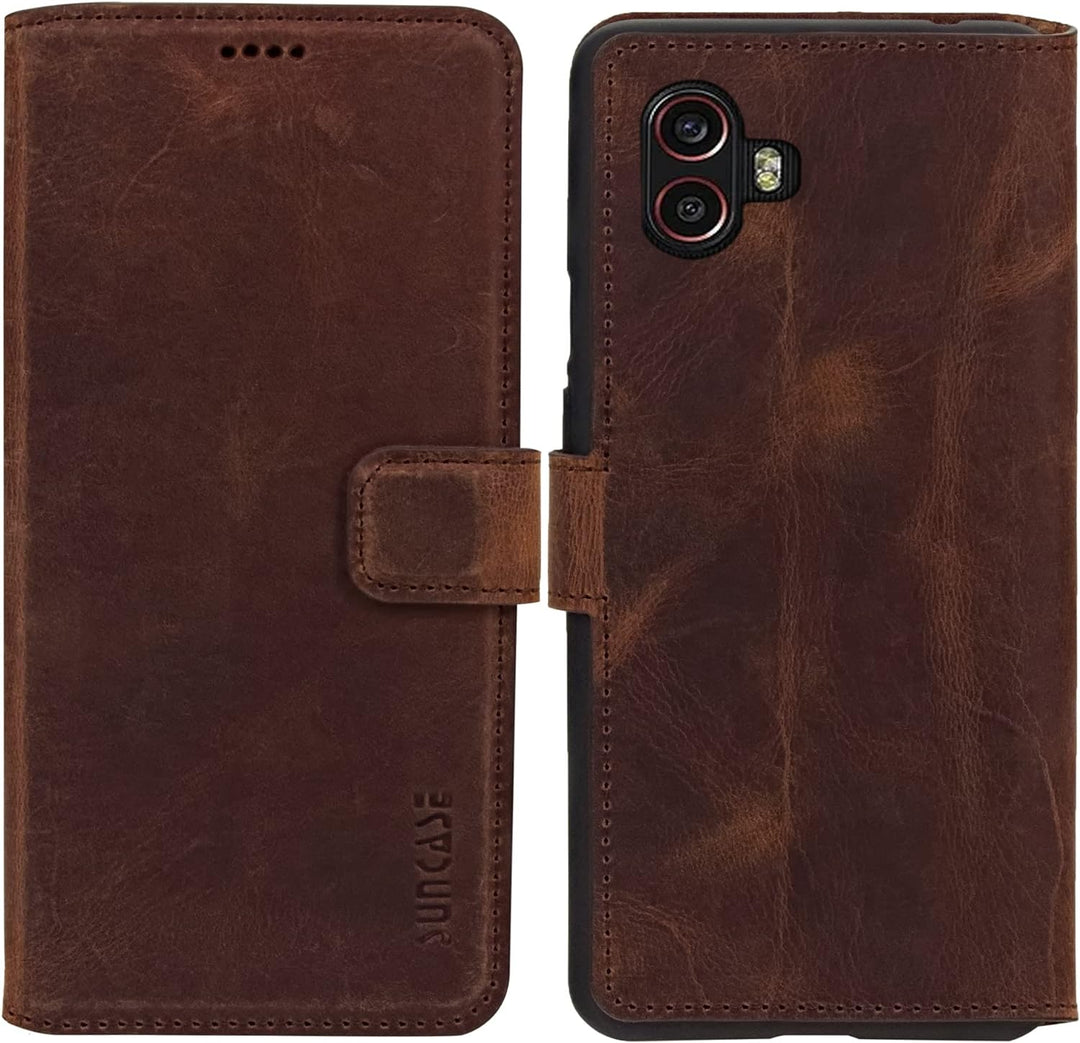 Suncase Book-Style Hülle kompatibel mit Samsung Galaxy XCover 6 Pro 5G Leder Tasche (Slim-Fit) Leder