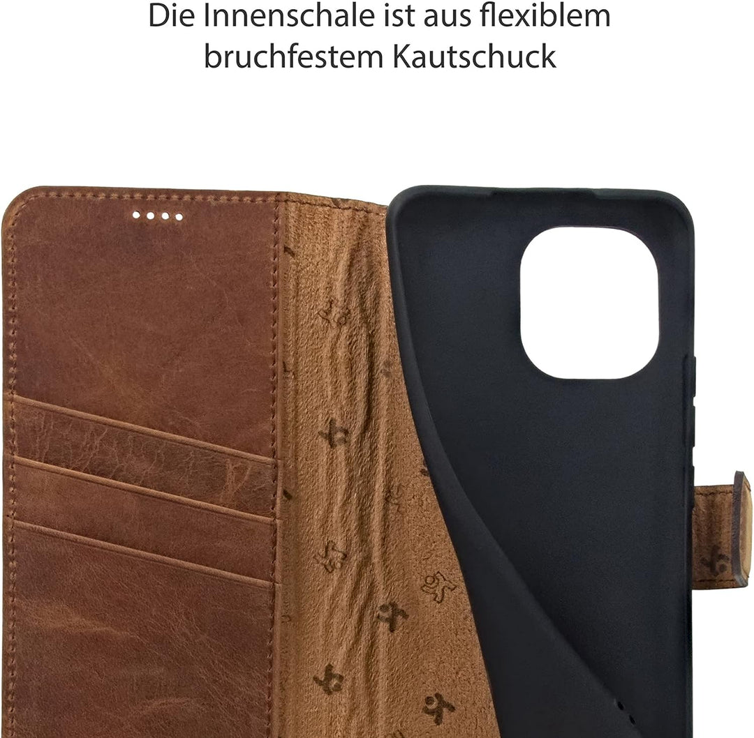 Suncase Book-Style Hülle kompatibel mit Xiaomi Mi 11 Leder Tasche (Slim-Fit) Lederhülle Handytasche
