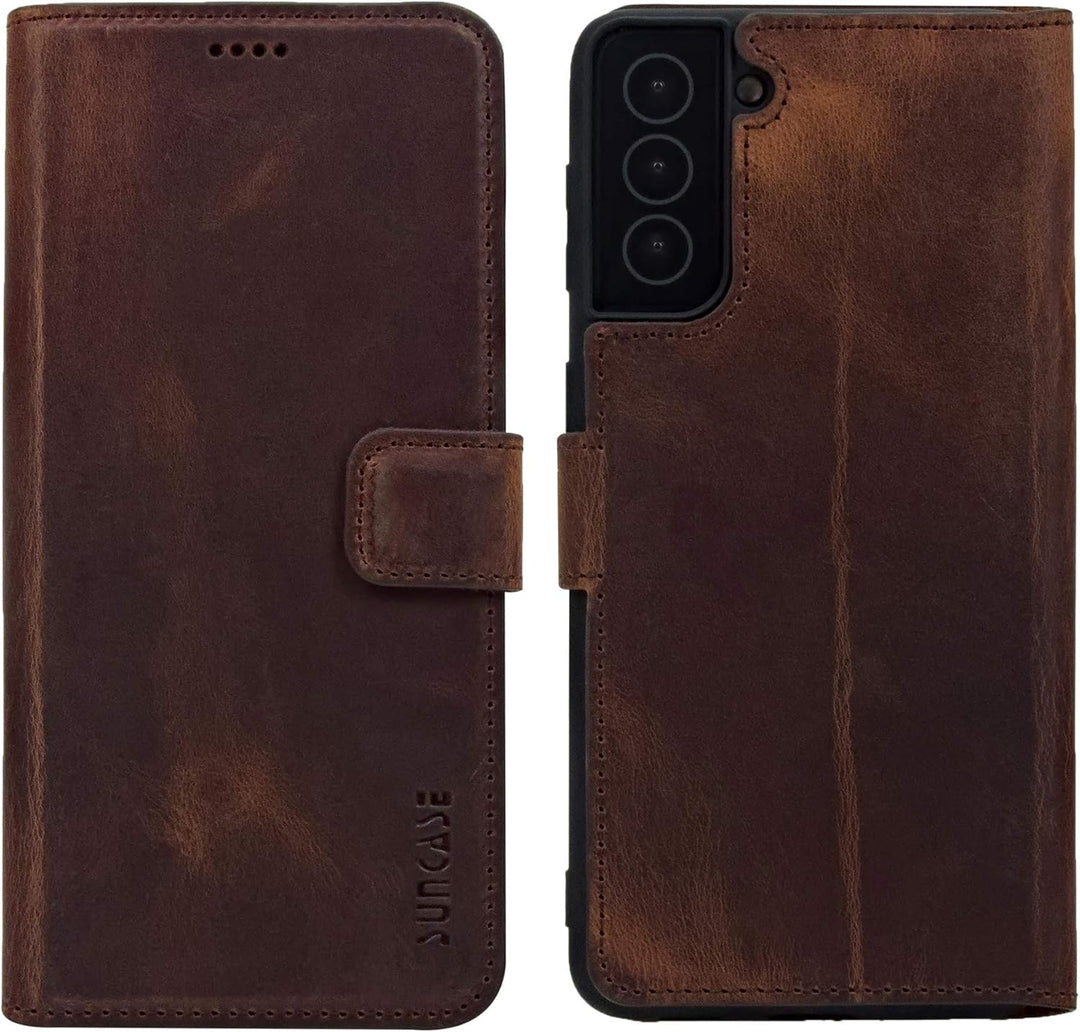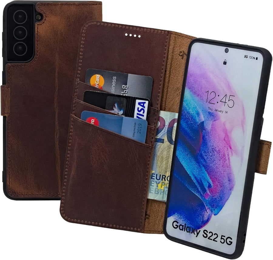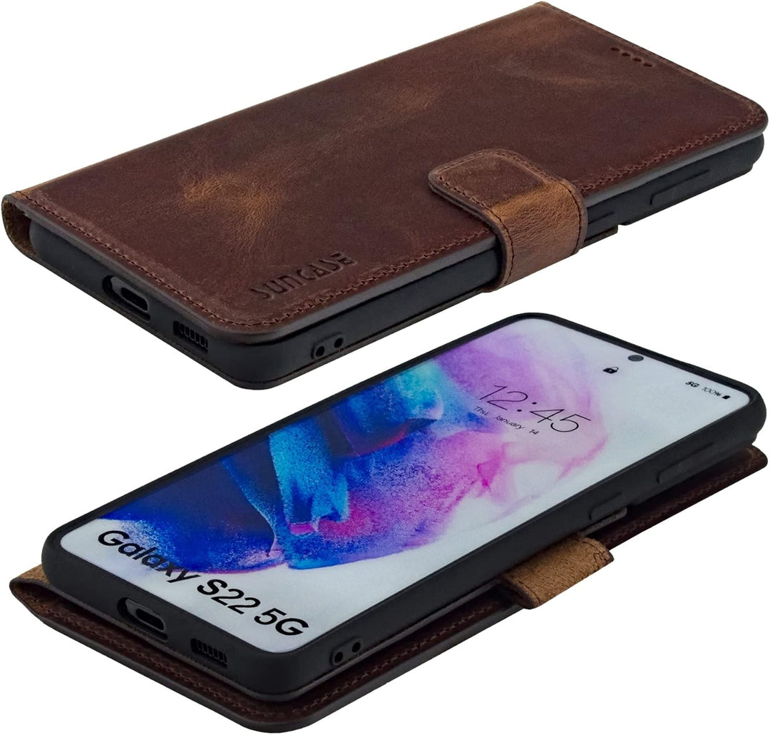 Suncase Book-Style Hülle kompatibel mit Samsung Galaxy S22 5G Leder Tasche (Slim-Fit) Lederhülle Han
