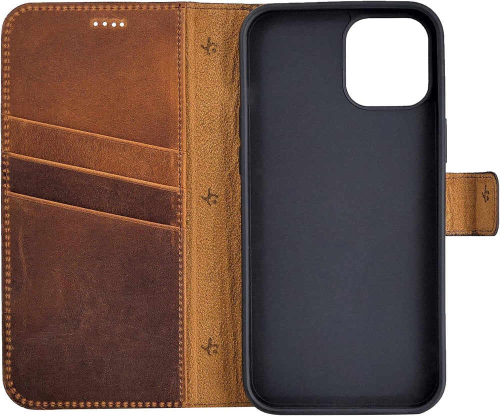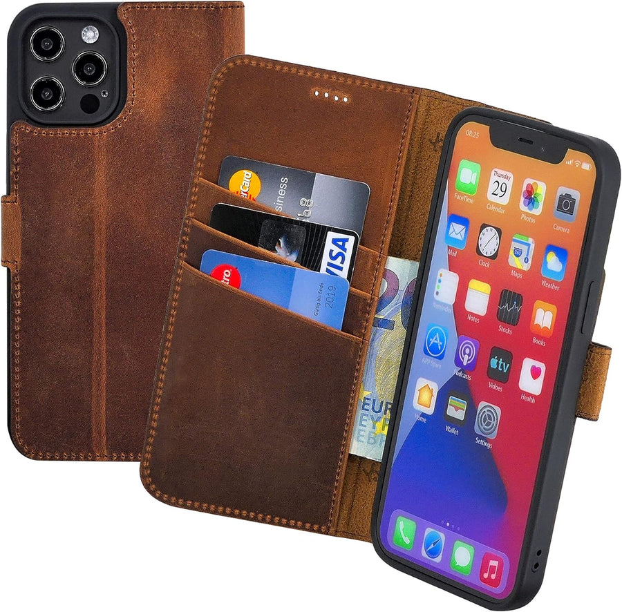 Suncase Book-Style Hülle kompatibel mit iPhone 12 Pro (6.1") Leder Tasche (Slim-Fit) Lederhülle Hand
