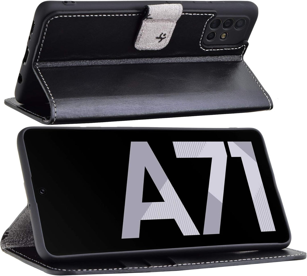 Suncase Book-Style Hülle kompatibel mit Samsung Galaxy A71 Leder Tasche (Slim-Fit) Lederhülle Handyt
