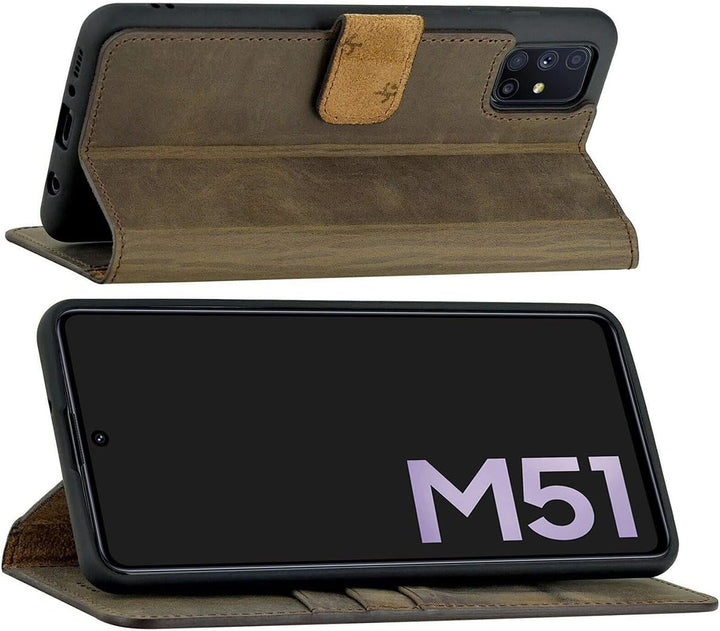 - Diese millimetergenaue, spezielle Ledertasche ist für das Samsung Galaxy M51 aus langlebigen, robusten ECHTEM Leder angefertigt.