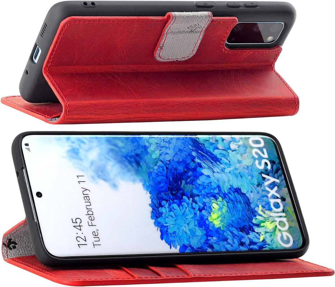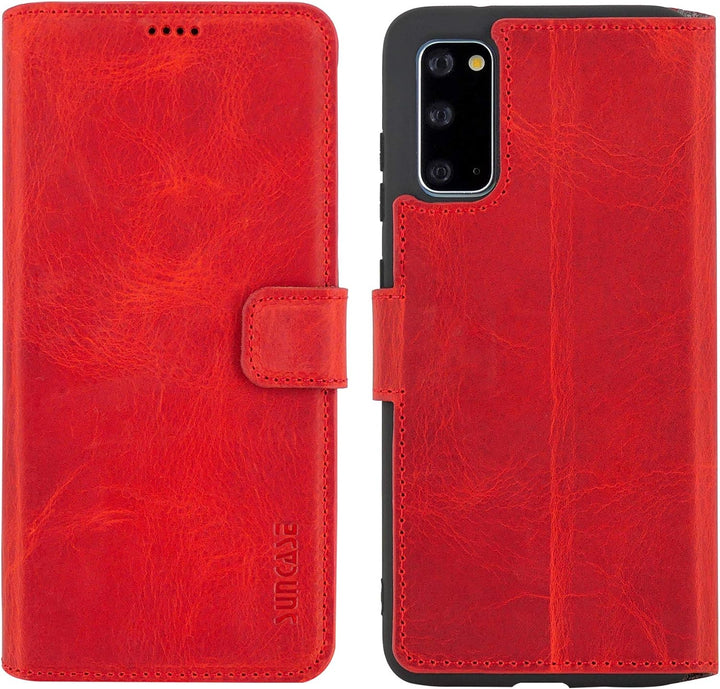 Suncase Book-Style Hülle kompatibel mit Samsung Galaxy S20 Leder Tasche (Slim-Fit) Lederhülle Handyt