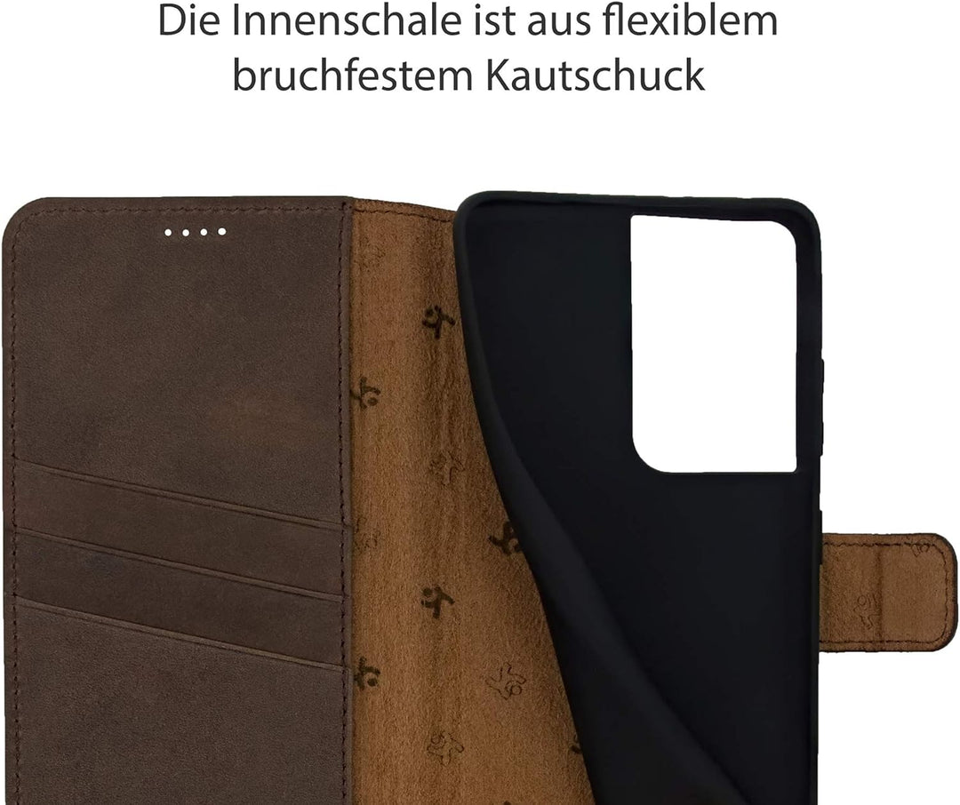 • Diese millimetergenaue, spezielle Ledertasche ist für das Samsung Galaxy S21 Ultra 5G aus langlebigen, robusten ECHTEM Leder angefertigt.