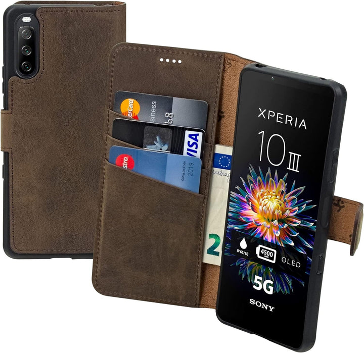 - Diese millimetergenaue, spezielle Ledertasche ist für das Sony Xperia 10 III 3 (2021) aus langlebigen, robusten ECHTEM Leder angefertigt.