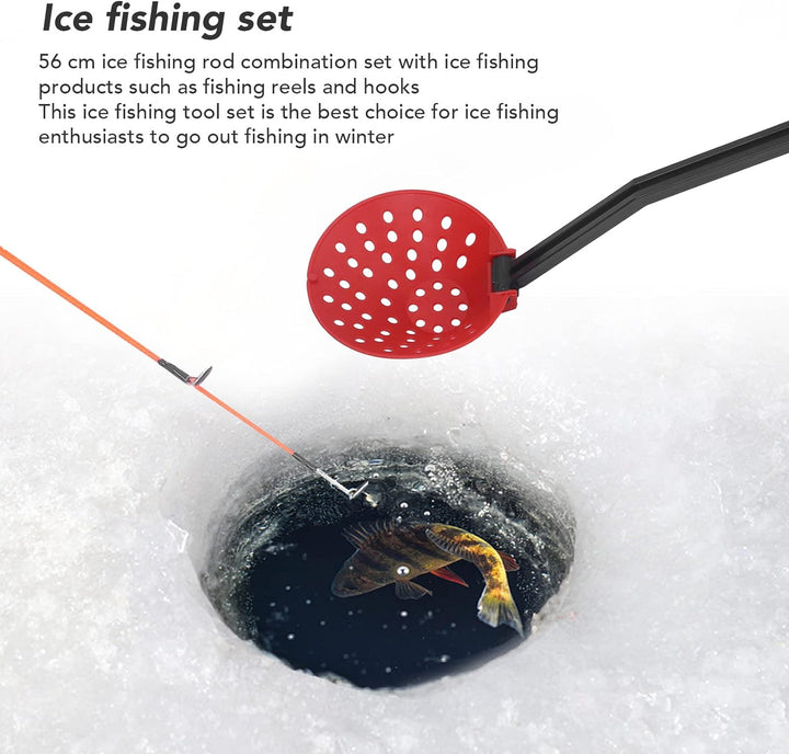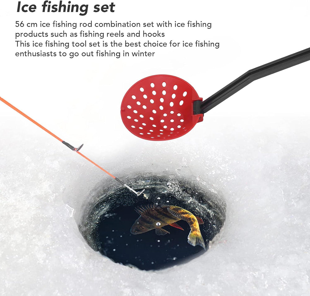 - Eisangel-Werkzeugset: Ein 56-cm-Eisangelruten-Kombinationsset mit Eisangelprodukten wie Rollen und Haken für Ihre Erfolgschancen auf dem Eis in dieser Saison.