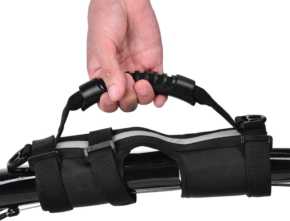 - Mit dem Klettverschluss können Sie ihn einfach an der Stange Ihres Rollers oder Klappfahrrads anbringen und auch bequem entfernen.