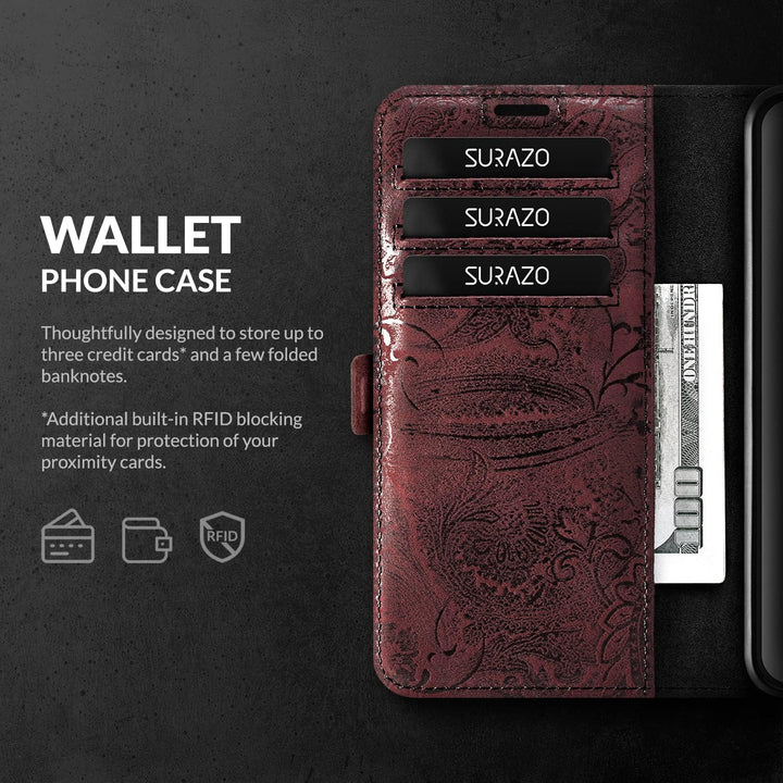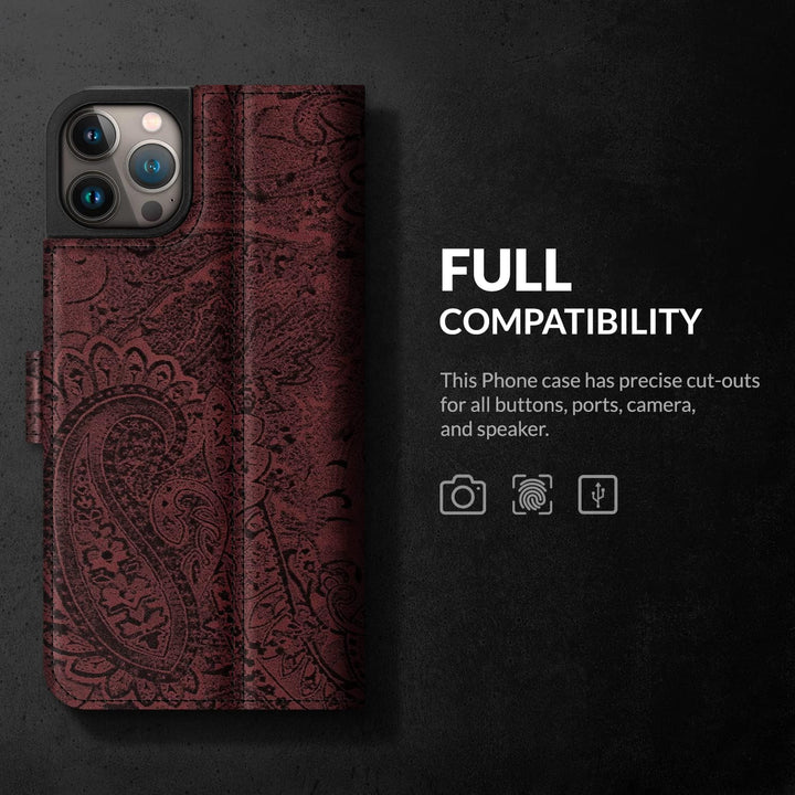 SURAZO Handyhülle für Apple iPhone 14 Pro Max Hülle Leder – Klappbare Echtleder Schutzhülle [mit Mag