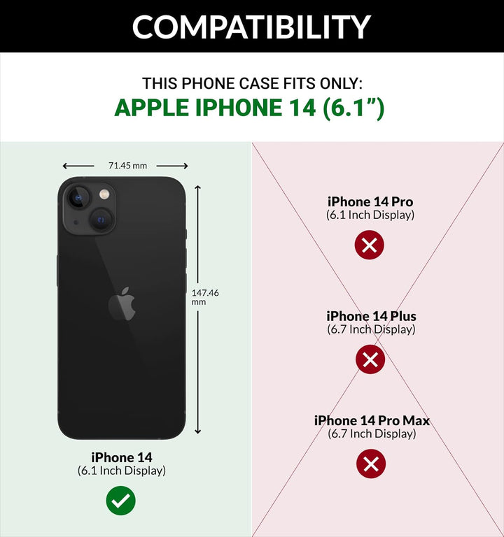 - 𝗞𝗢𝗠𝗣𝗔𝗧𝗜𝗕𝗜𝗟𝗜𝗧𝗔̈𝗧 : Passend nur Apple iPhone 14 (6.1 Zoll) 👈 Vor dem Kauf dieser Handyhülle prüfen Sie zweimal Ihr Handy Modell. Speziell entwickelten Ausschnitte und Öffnungen in der Hülle für alle