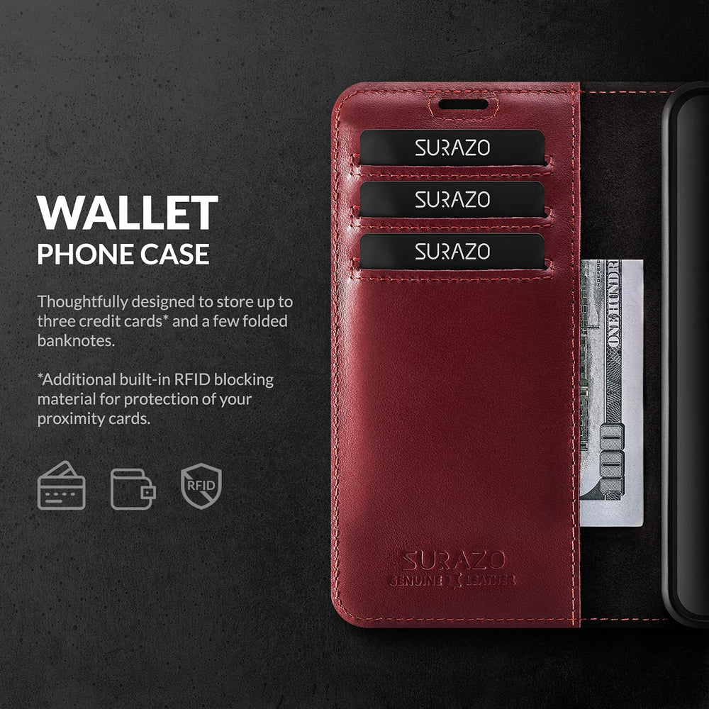 - 𝗛𝗢𝗛𝗘 𝗤𝗨𝗔𝗟𝗜𝗧𝗔̈𝗧 : Original SURAZO Handyhülle hergestellt aus selektierten, hohen Qualität 100% echtem Narbenleder. Wunderschönes Rindsleder von den besten europäischen Gerbereien. Es hat eine glatte Oberfläche mit