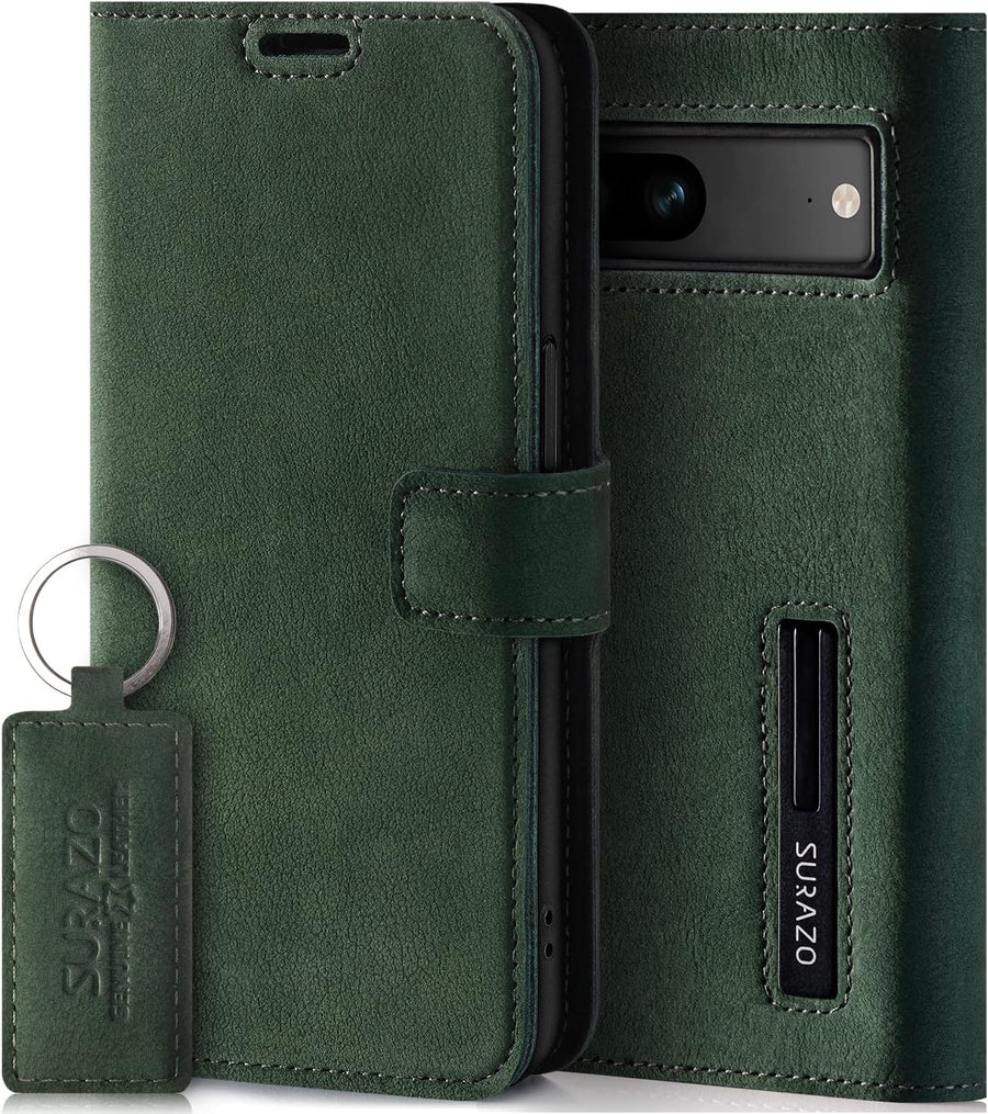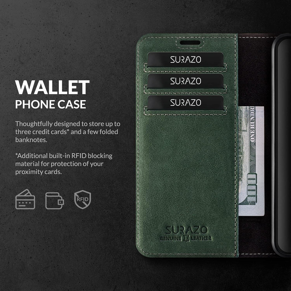 - 𝗛𝗢𝗛𝗘 𝗤𝗨𝗔𝗟𝗜𝗧𝗔̈𝗧 : Original SURAZO Handyhülle hergestellt aus selektierten, hohen Qualität 100% echtem Nubukleder - Premium Rindsleder von den besten europäischen Gerbereien. Schoenes mattes Wildleder mit