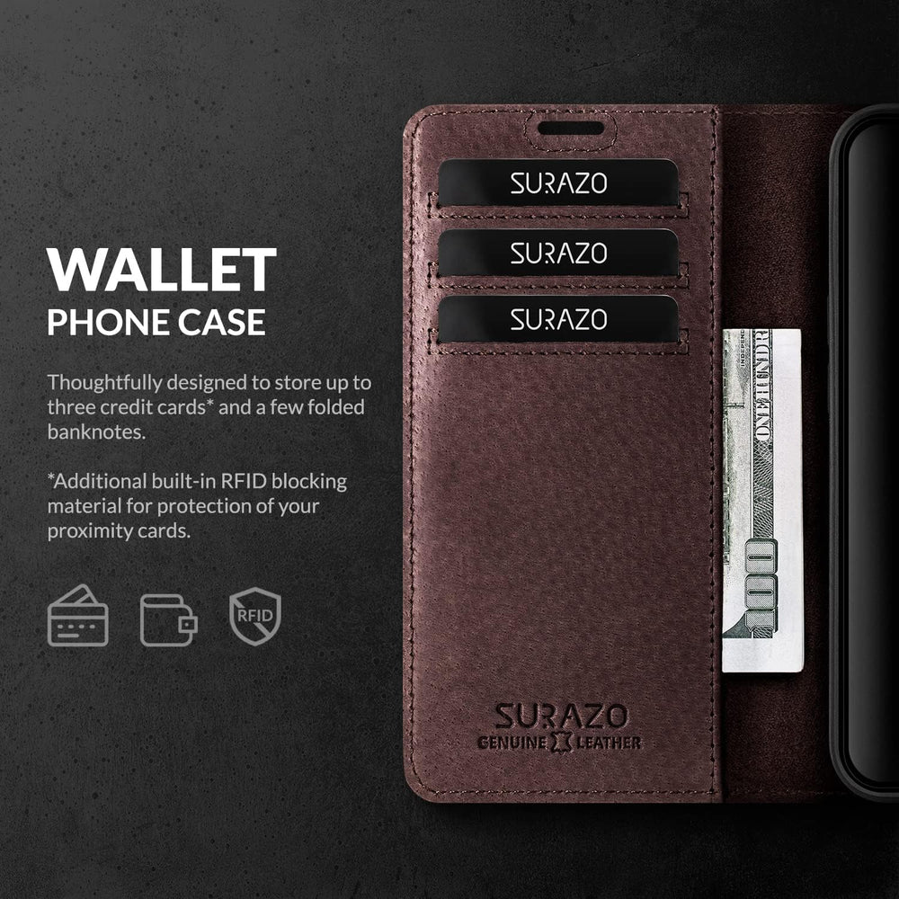 - ✅𝗛𝗢𝗛𝗘 𝗤𝗨𝗔𝗟𝗜𝗧𝗔̈𝗧 : Original SURAZO Handyhülle hergestellt aus selektierten, hohen Qualität 100% echtem Rindsleder von den besten europäischen Gerbereien. Wunderschönes mattes Wildleder, verziert mit einem