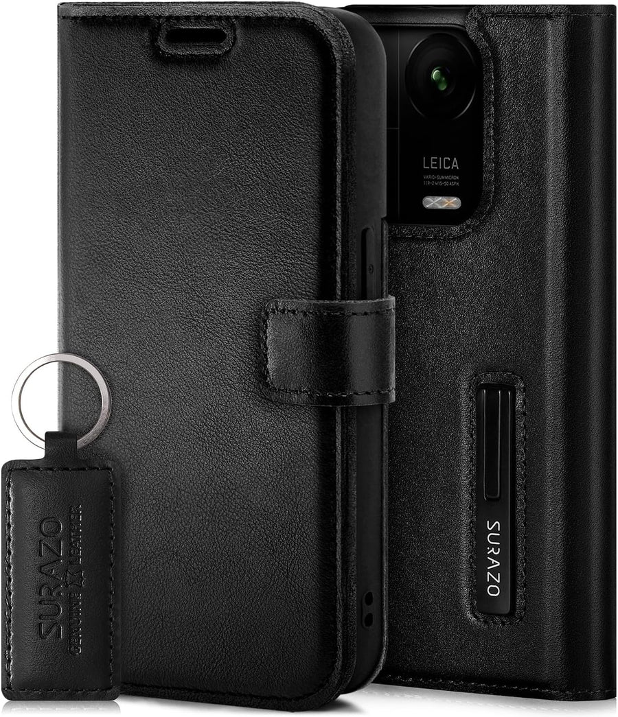SURAZO Premium Handyhülle für Xiaomi 13 5G Hülle Leder – Klappbare Echtleder Schutzhülle [Magnet, Ka