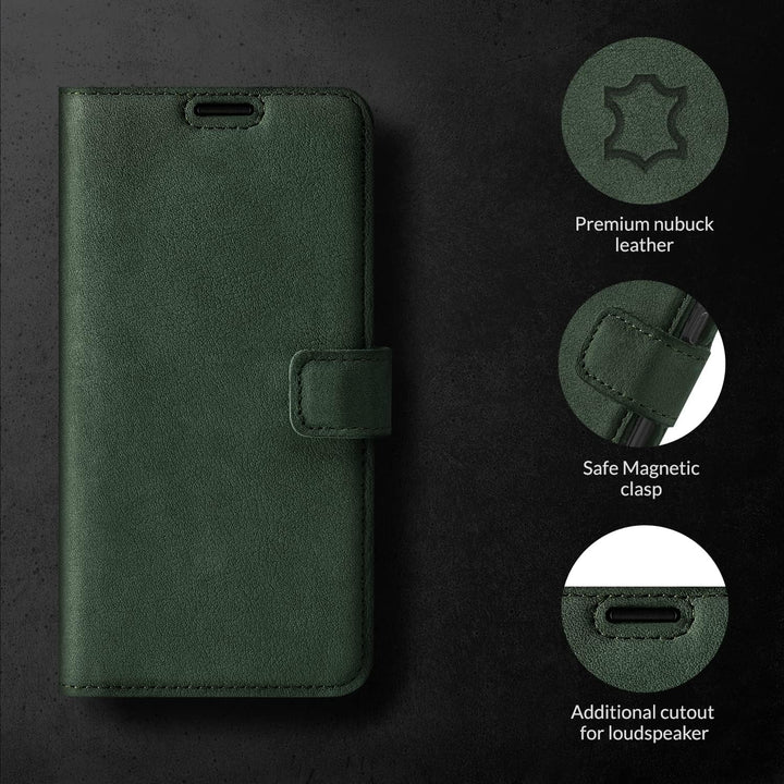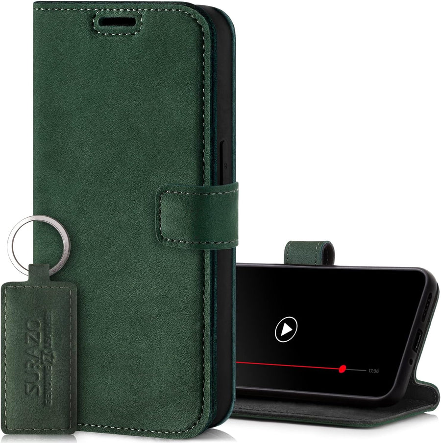 - ✅𝗛𝗢𝗛𝗘 𝗤𝗨𝗔𝗟𝗜𝗧𝗔̈𝗧 : Original SURAZO Handyhülle hergestellt aus selektierten, hohen Qualität 100% echtem Nubukleder - Premium Rindsleder von den besten europäischen Gerbereien. Schoenes mattes Wildleder mit