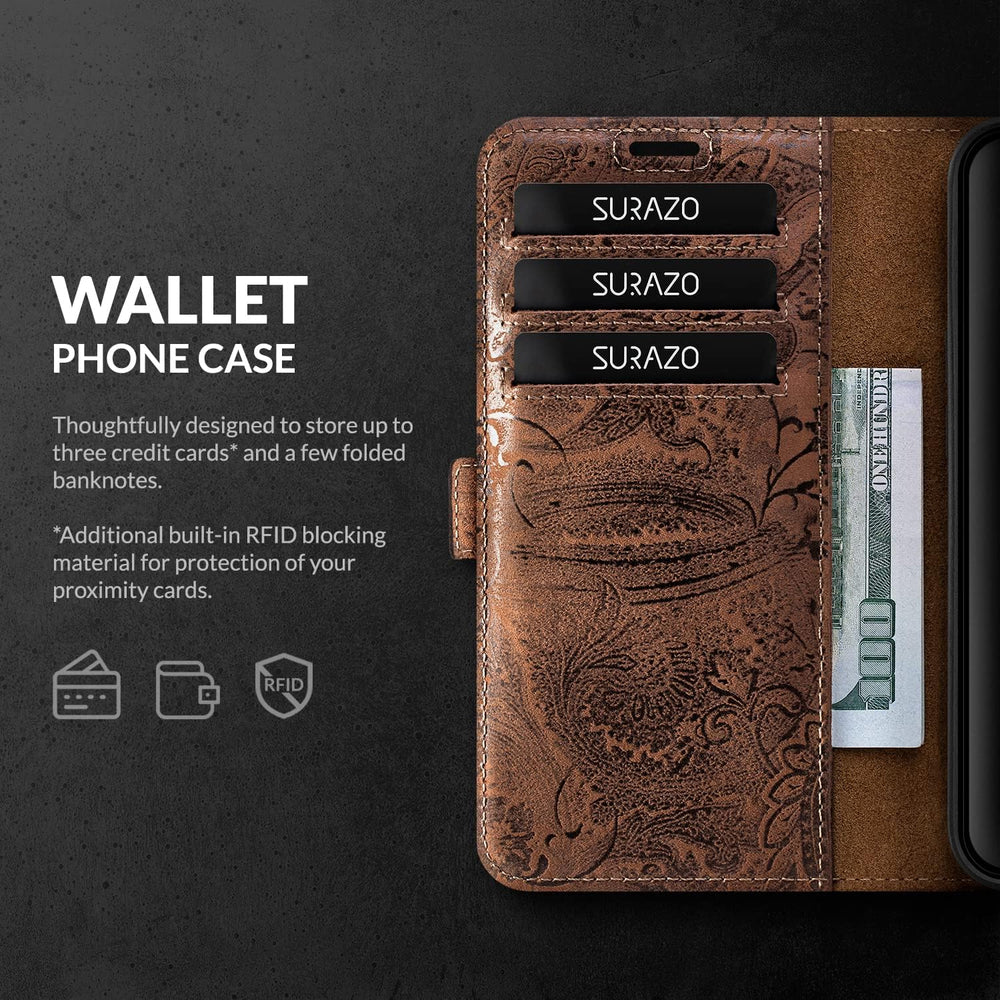 - ✅𝗛𝗢𝗛𝗘 𝗤𝗨𝗔𝗟𝗜𝗧𝗔̈𝗧 : Original SURAZO Handyhülle hergestellt aus selektierten, hohen Qualität 100% echtem Rindsleder von den besten europäischen Gerbereien. Wunderschönes mattes Wildleder, verziert mit einem