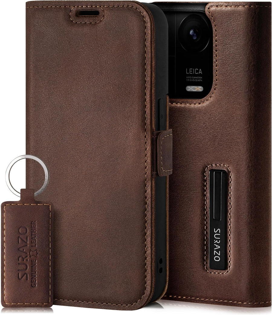 - ✅𝗛𝗢𝗛𝗘 𝗤𝗨𝗔𝗟𝗜𝗧𝗔̈𝗧 : Original SURAZO Handyhülle hergestellt aus selektierten, hohen Qualität 100% echtem Leder vom Typ „Crazy Horse“ - Kräftig, wild und mit einem rustikalen Look. Es ist ein Rindsleder von den