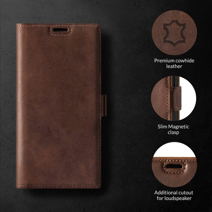 - ✅𝗛𝗢𝗛𝗘 𝗤𝗨𝗔𝗟𝗜𝗧𝗔̈𝗧 : Original SURAZO Handyhülle hergestellt aus selektierten, hohen Qualität 100% echtem Leder vom Typ „Crazy Horse“ - Kräftig, wild und mit einem rustikalen Look. Es ist ein Rindsleder von den