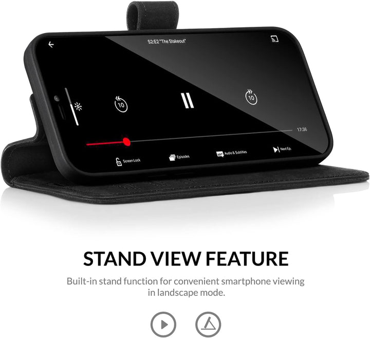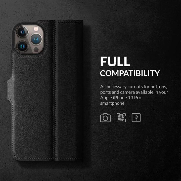 - ZUSÄTZLICHER SCHUTZ - Eingebaute RFID Schutzfunktion zum Schutz vor unbefugtem Datenauslesen aus Ihren Proximity-Karten. Der sichere Magnetverschluss der Lasche hält Ihr Apple 13 Pro Handy sicher in der Abdeckung. Die robuste, transparente