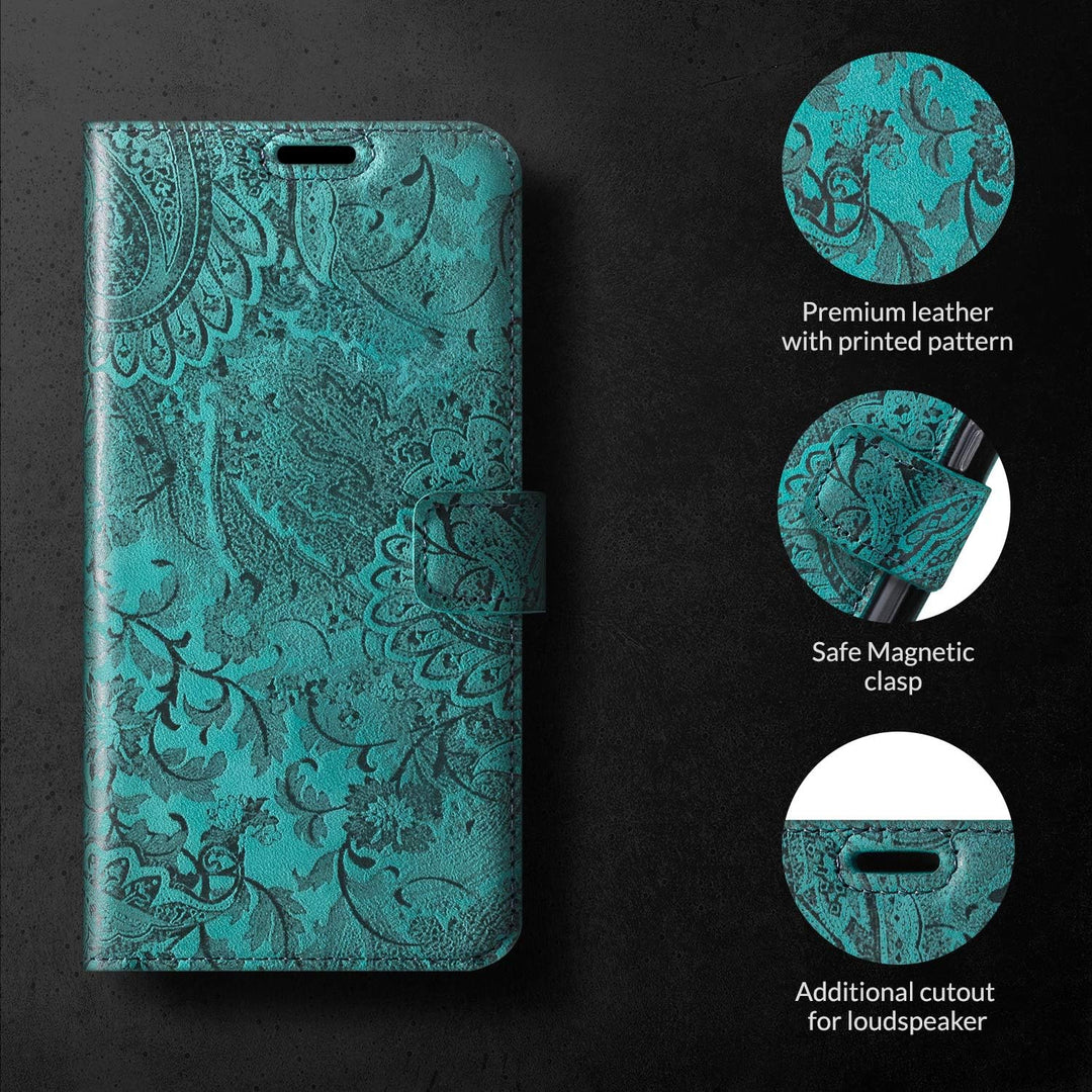 - ✅HOHE QUALITÄT – Original SURAZO Handyhülle hergestellt aus selektierten, hohen Qualität 100% echtem Rindsleder von den besten europäischen Gerbereien. Wunderschönes mattes Wildleder, verziert mit einem wunderschönen, einzigartigen Blumenmotiv,